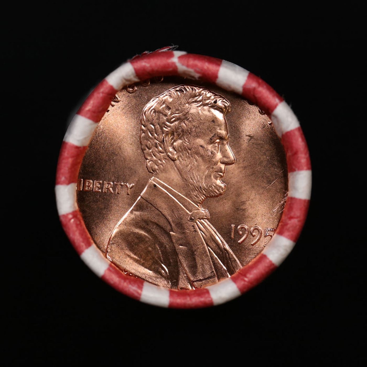 Shotgun Lincoln 1c roll, 1995-p 50 pcs Bank Wrapper.. A terrific Shotgun roll of Lincoln cents. Most if not all coin should be cherry red.