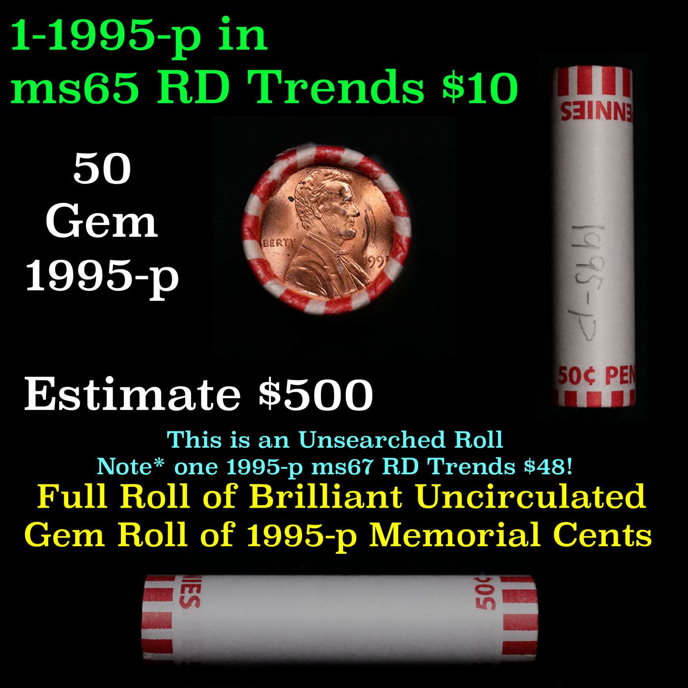 Shotgun Lincoln 1c roll, 1995-p 50 pcs Bank Wrapper.. A terrific Shotgun roll of Lincoln cents. Most if not all coin should be cherry red.