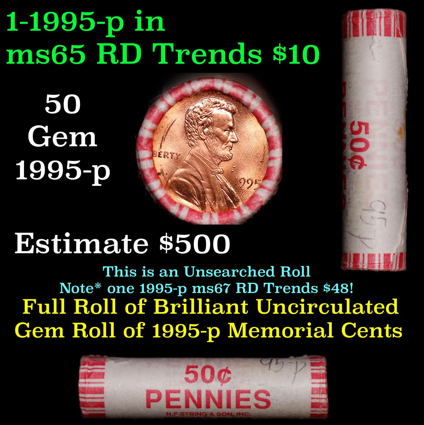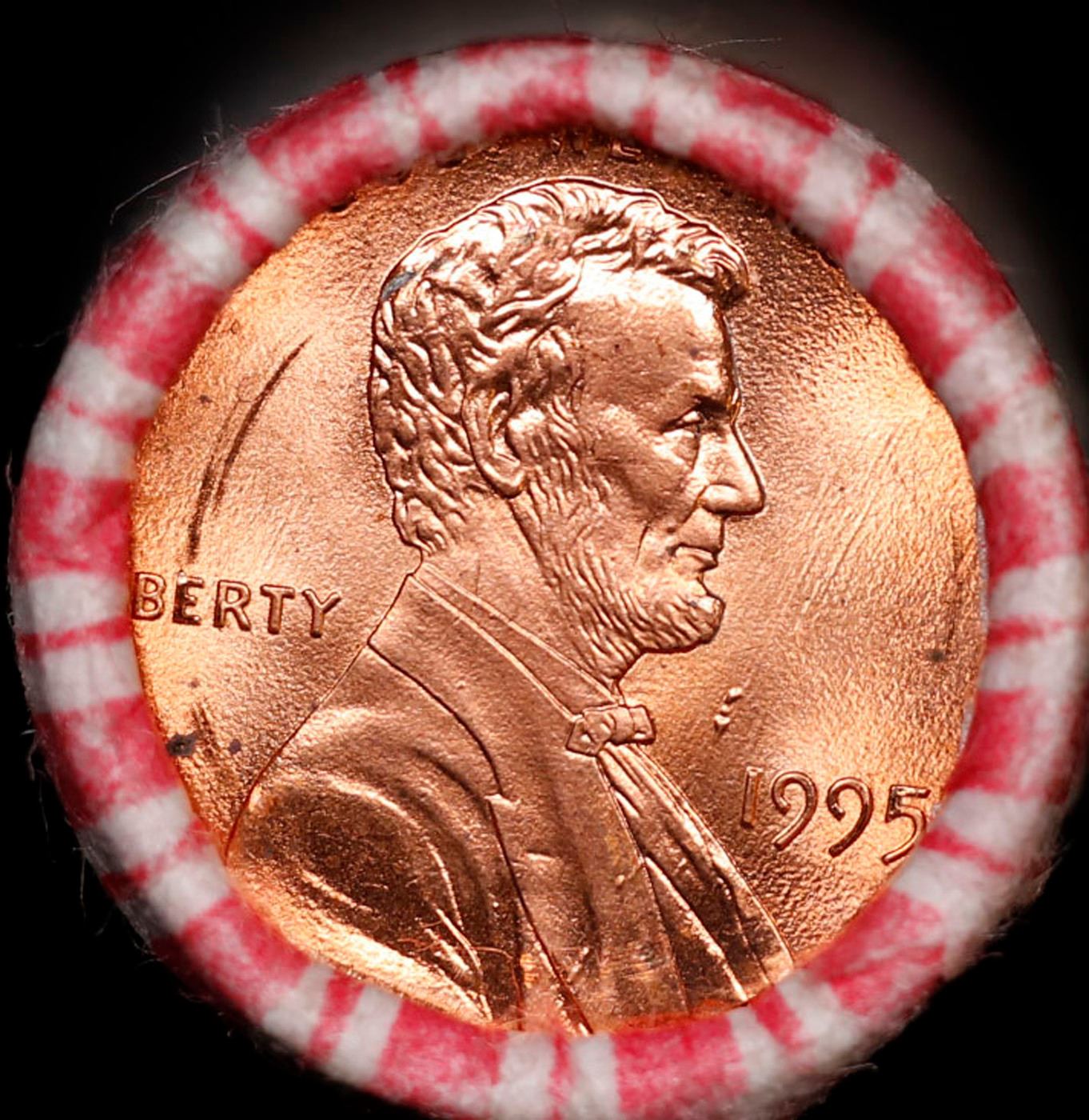 Shotgun Lincoln 1c roll, 1995-p 50 pcs Bank Wrapper.. A terrific Shotgun roll of Lincoln cents. Most if not all coin should be cherry red.