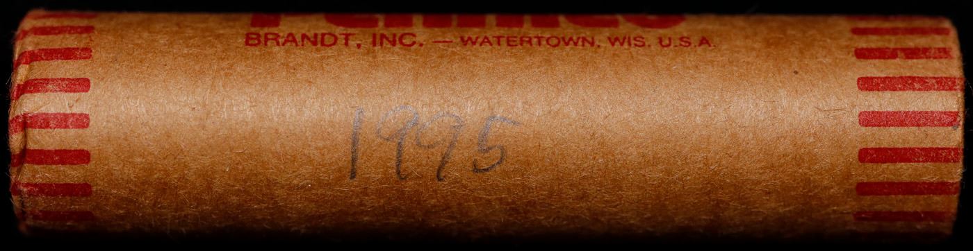 Shotgun Lincoln 1c roll, 1995-p 50 pcs Brandt Wrapper. A terrific Shotgun roll of Lincoln cents. Most if not all coin should be cherry red.