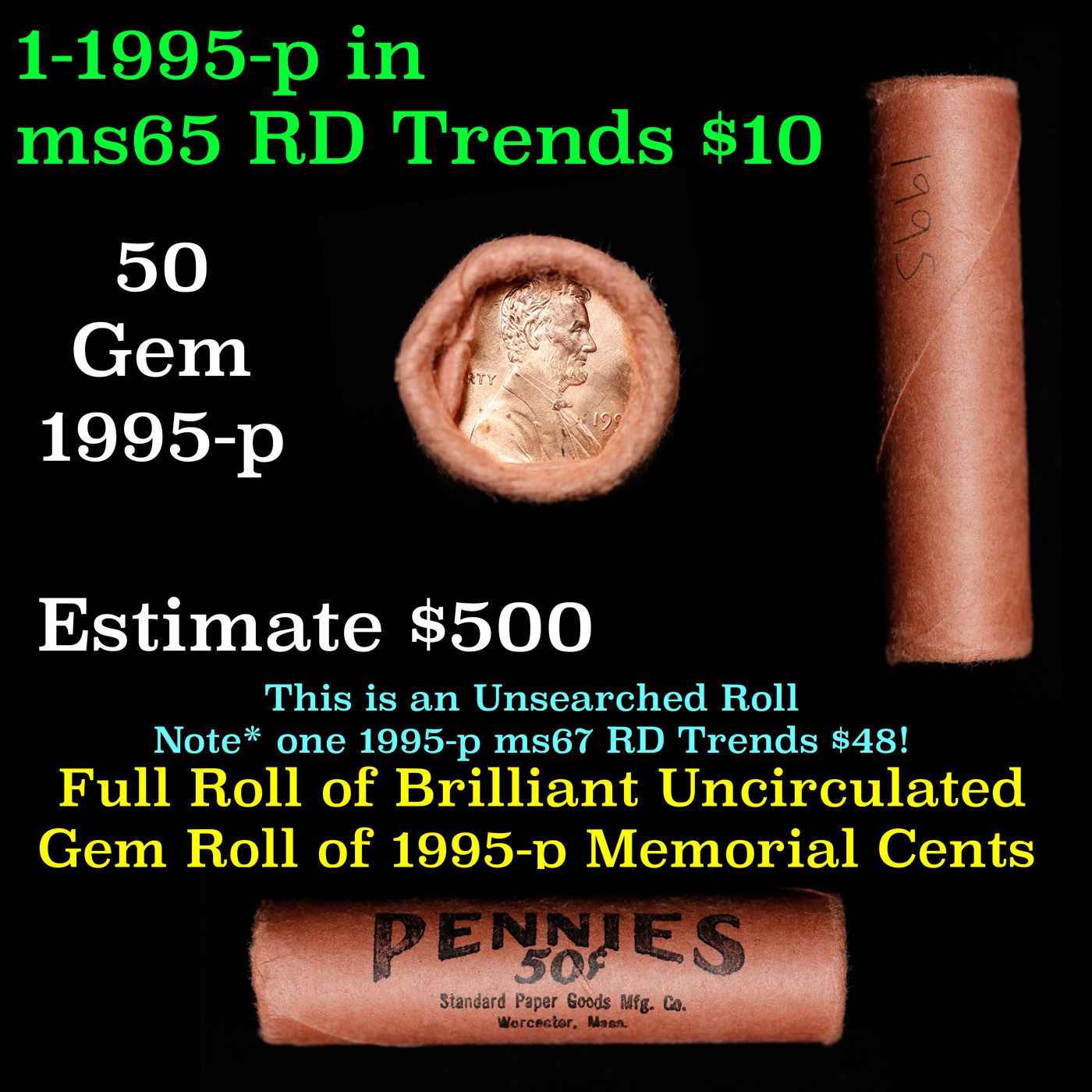 Shotgun Lincoln 1c roll, 1995-p 50 pcs Standard Paper Goods Wrapper.. A terrific Shotgun roll of Lincoln cents. Most if not all coin should be cherry red.