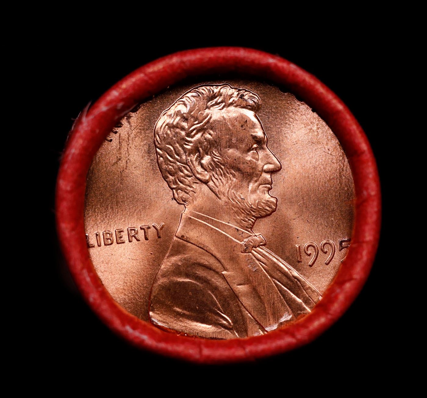 Shotgun Lincoln 1c roll, 1995-p 50 pcs Steel-Strong Wrapper.. A terrific Shotgun roll of Lincoln cents. Most if not all coin should be cherry red.
