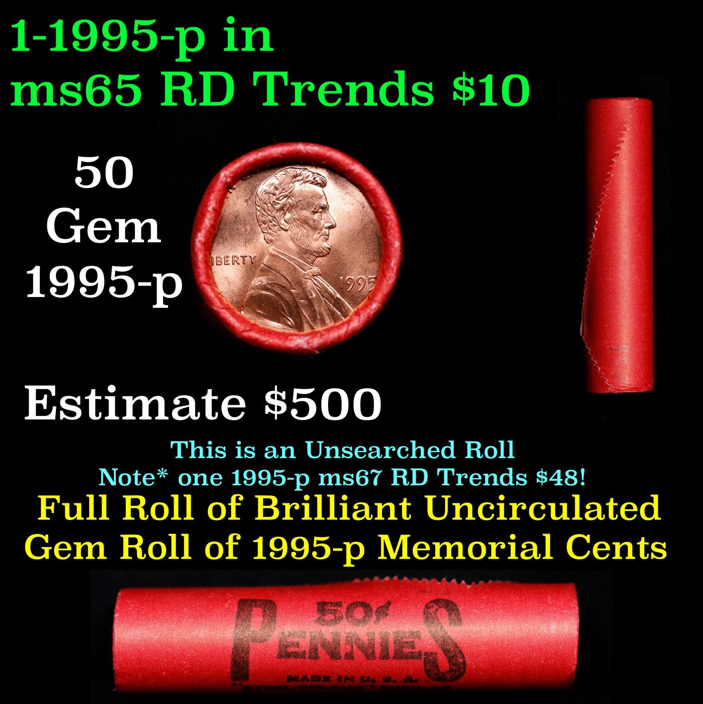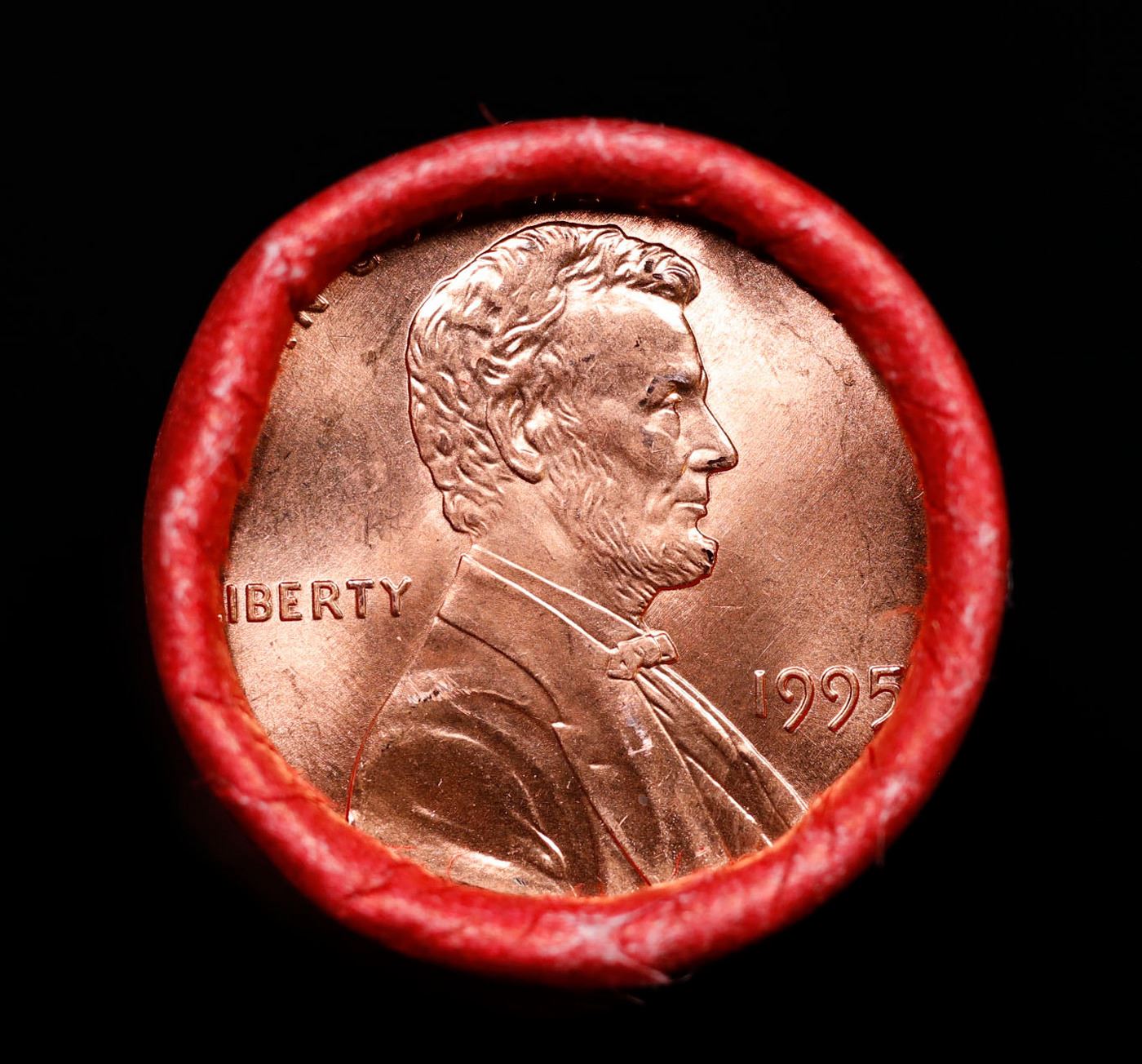 Shotgun Lincoln 1c roll, 1995-p 50 pcs Steel-Strong Wrapper.. A terrific Shotgun roll of Lincoln cents. Most if not all coin should be cherry red.