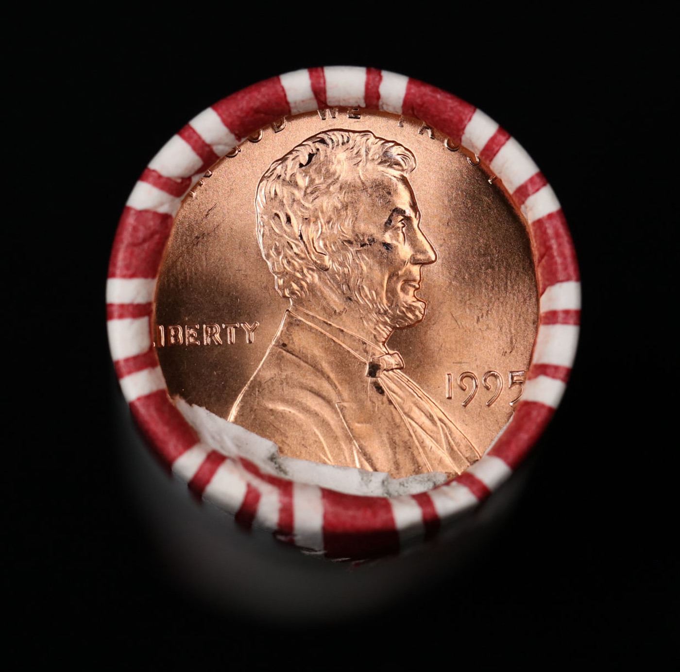 Shotgun Lincoln 1c roll, 1995-p 50 pcs Steel-Strong Wrapper.. A terrific Shotgun roll of Lincoln cents. Most if not all coin should be cherry red.