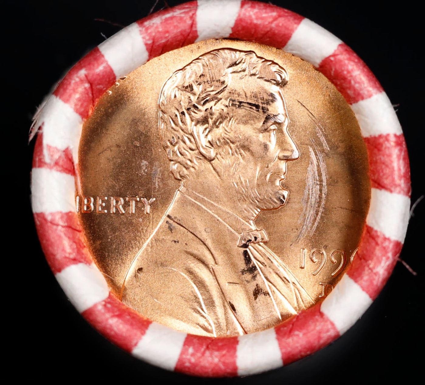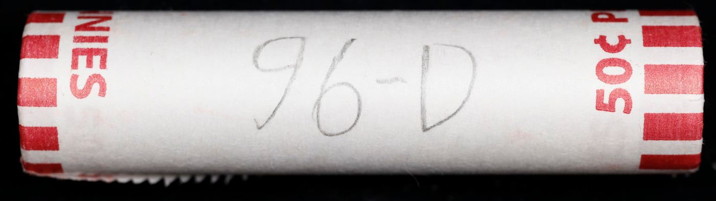 Shotgun Lincoln 1c roll, 1996-d 50 pcs Bank Wrapper.. A terrific Shotgun roll of Lincoln cents. Most if not all coin should be cherry red.
