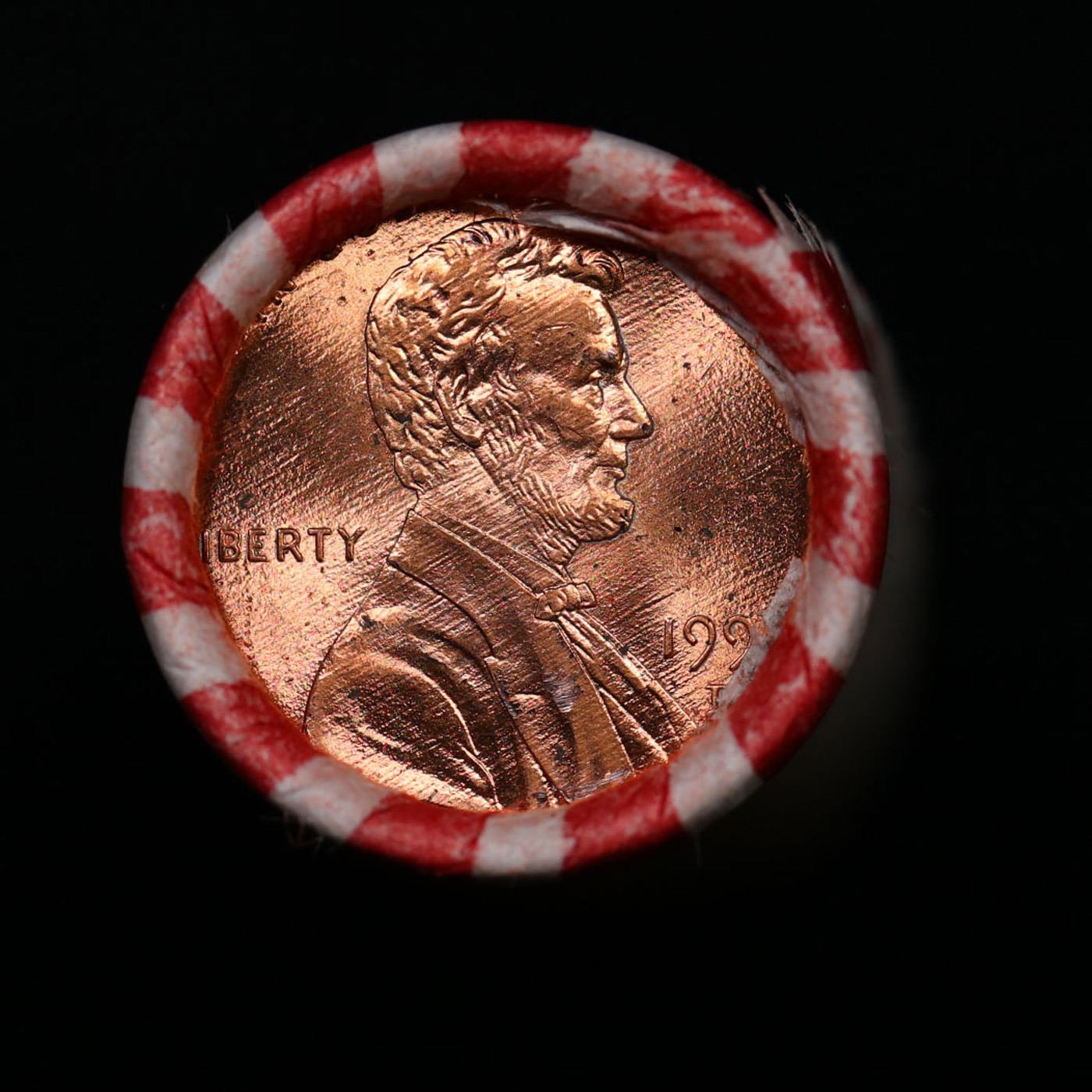 Shotgun Lincoln 1c roll, 1996-d 50 pcs Bank Wrapper.. A terrific Shotgun roll of Lincoln cents. Most if not all coin should be cherry red.
