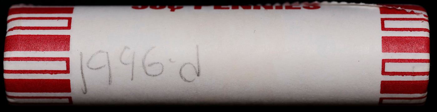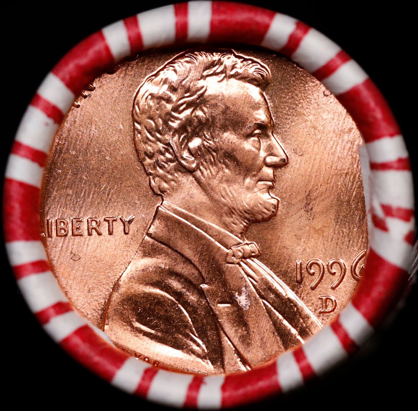 Shotgun Lincoln 1c roll, 1996-d 50 pcs Brandt 50c Wrapper.. A terrific Shotgun roll of Lincoln cents. Most if not all coin should be cherry red.