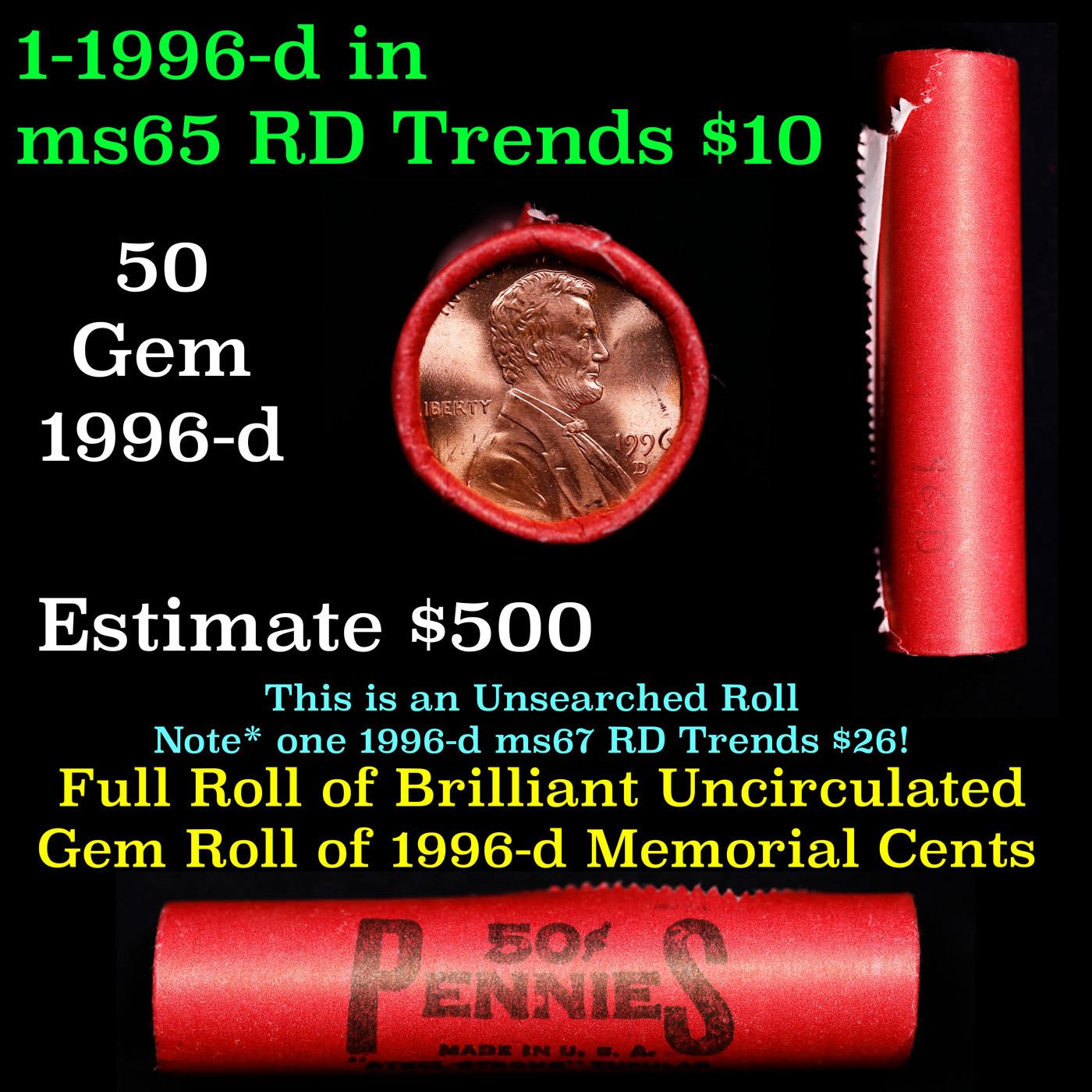 Shotgun Lincoln 1c roll, 1996-d 50 pcs Steel-Strong Wrapper.. A terrific Shotgun roll of Lincoln cents. Most if not all coin should be cherry red.