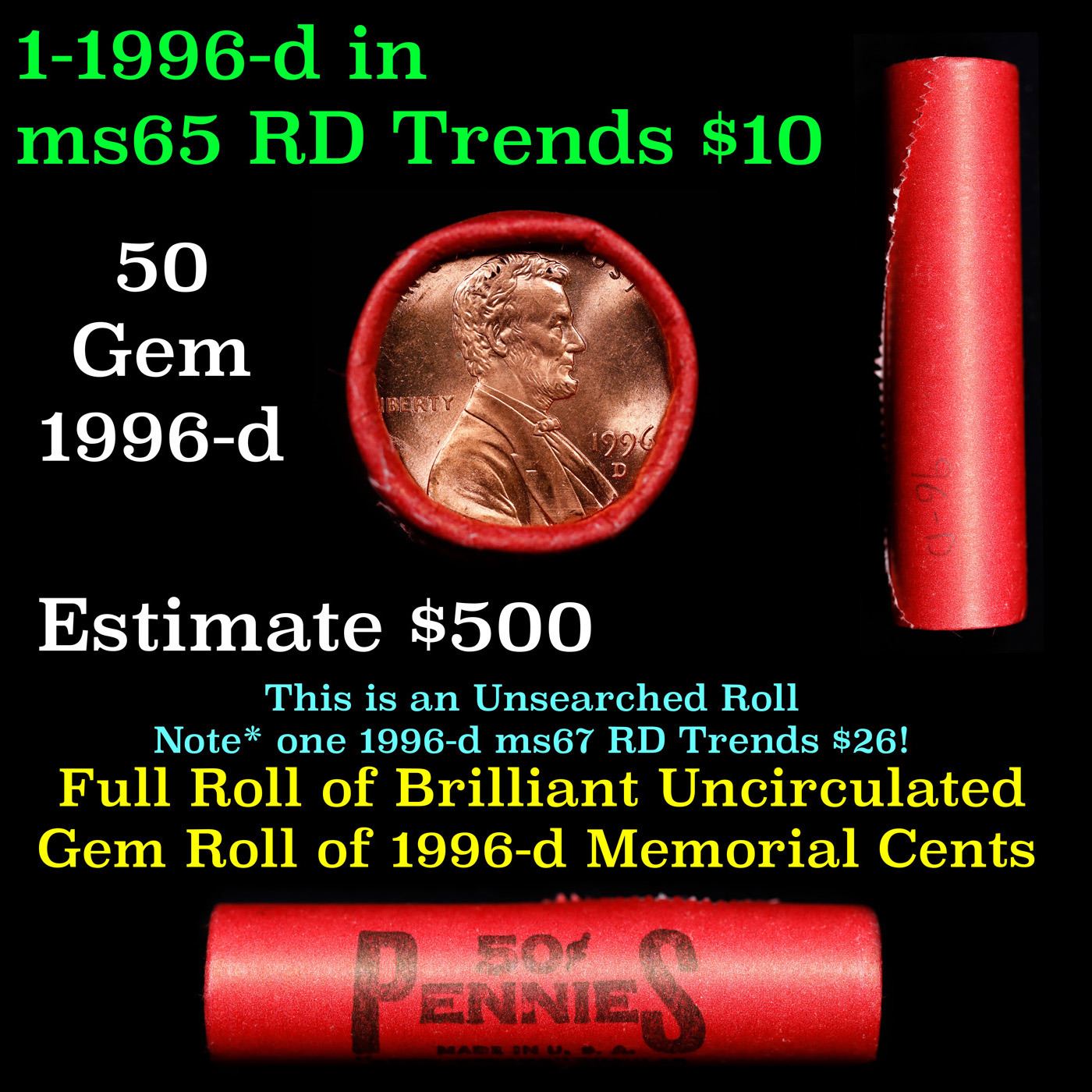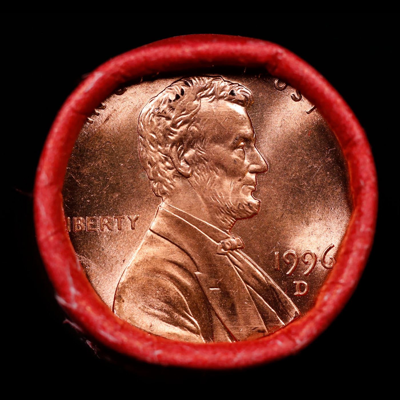 Shotgun Lincoln 1c roll, 1996-d 50 pcs Steel-Strong Wrapper.. A terrific Shotgun roll of Lincoln cents. Most if not all coin should be cherry red.