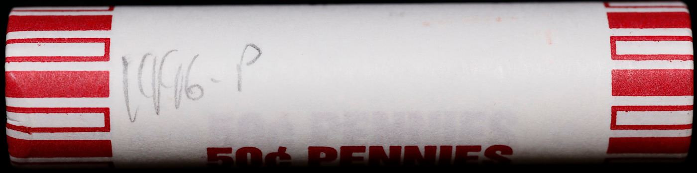 Shotgun Lincoln 1c roll, 1996-p 50 pcs Brandt 50c Wrapper.. A terrific Shotgun roll of Lincoln cents. Most if not all coin should be cherry red.