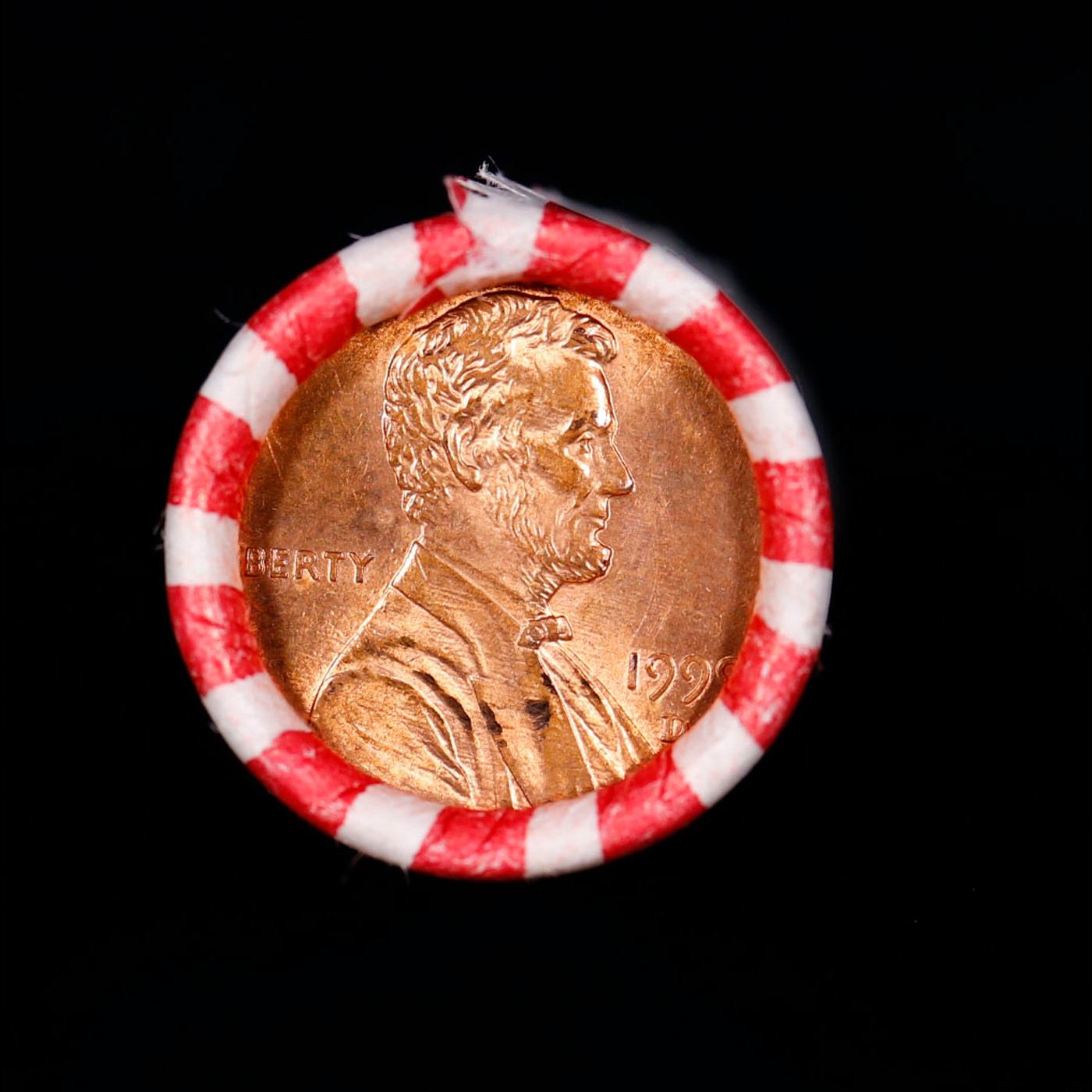 Shotgun Lincoln 1c roll, 1999-d 50 pcs Bank Wrapper.. A terrific Shotgun roll of Lincoln cents. Most if not all coin should be cherry red.