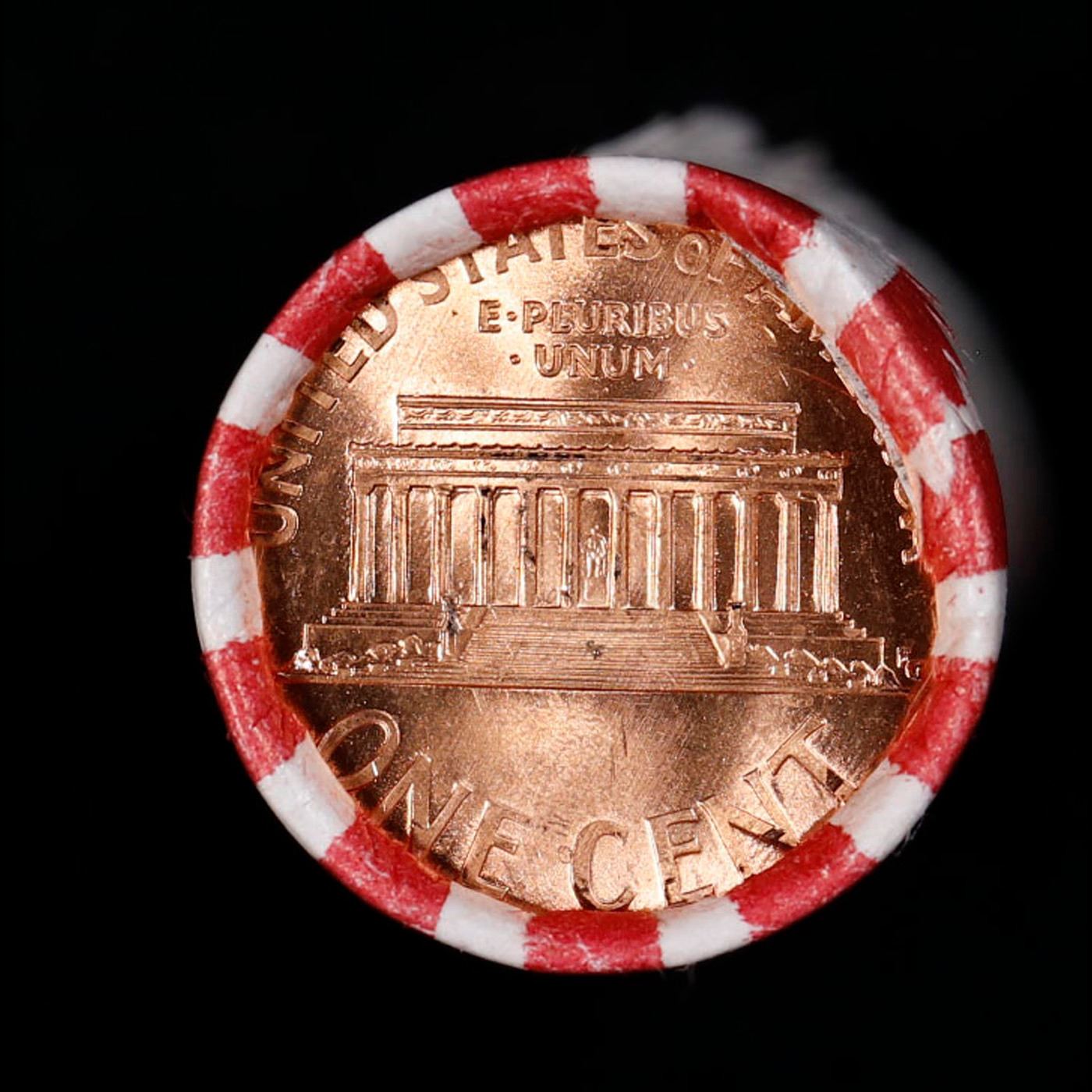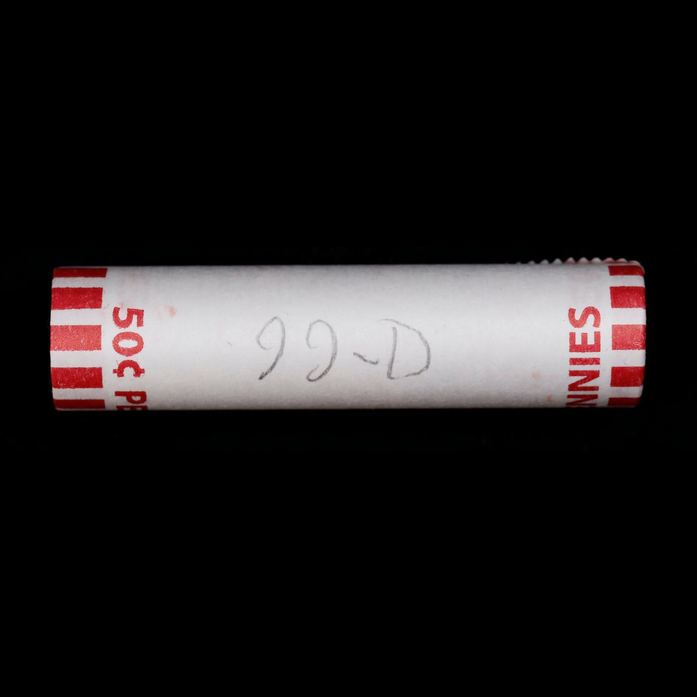 Shotgun Lincoln 1c roll, 1999-d 50 pcs Bank Wrapper.. A terrific Shotgun roll of Lincoln cents. Most if not all coin should be cherry red.