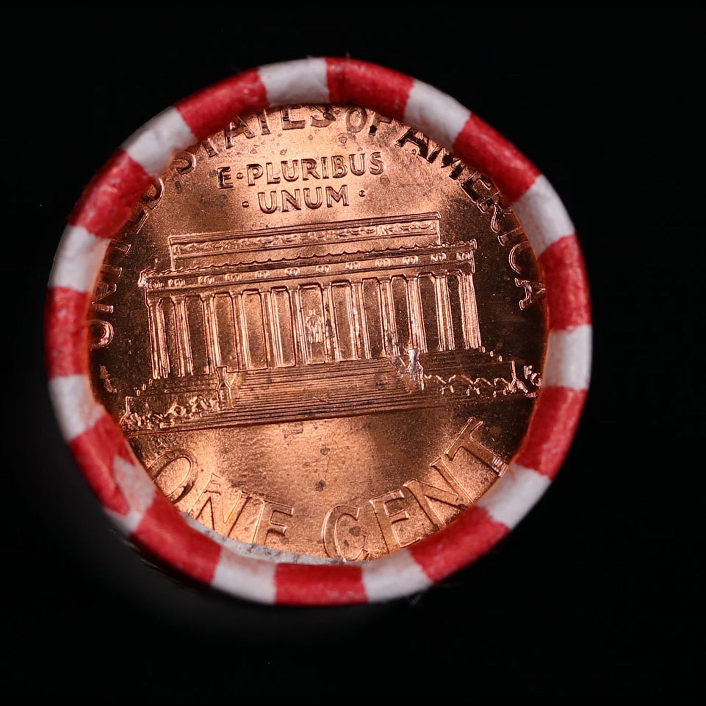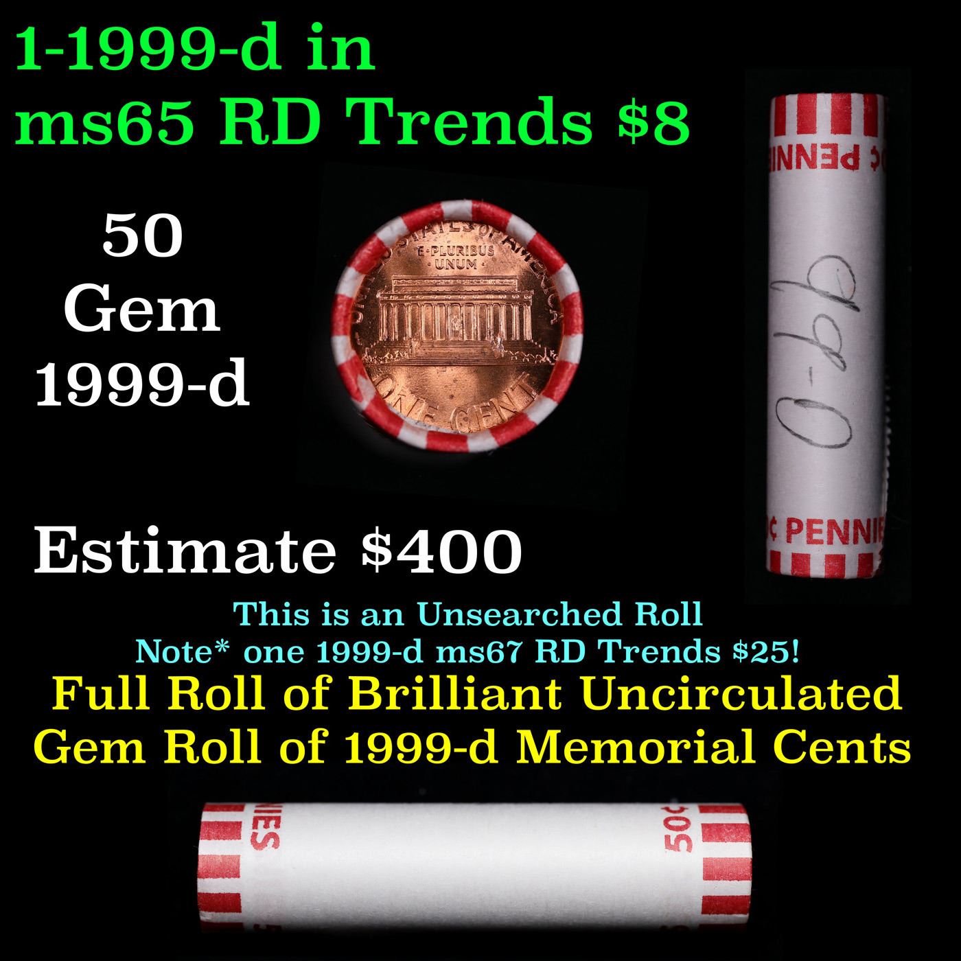 Shotgun Lincoln 1c roll, 1999-d 50 pcs Bank Wrapper.. A terrific Shotgun roll of Lincoln cents. Most if not all coin should be cherry red.
