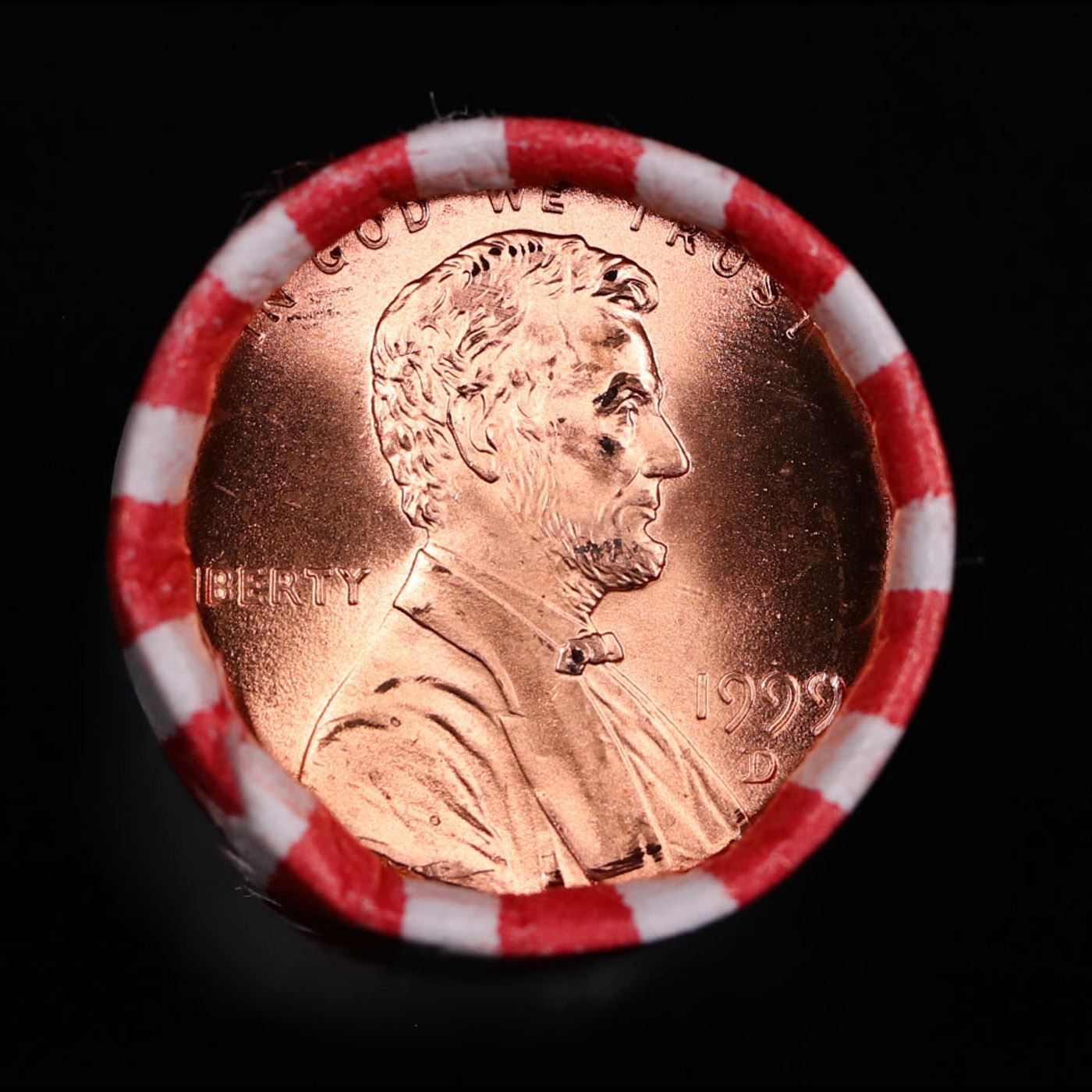 Shotgun Lincoln 1c roll, 1999-d 50 pcs Bank Wrapper.. A terrific Shotgun roll of Lincoln cents. Most if not all coin should be cherry red.