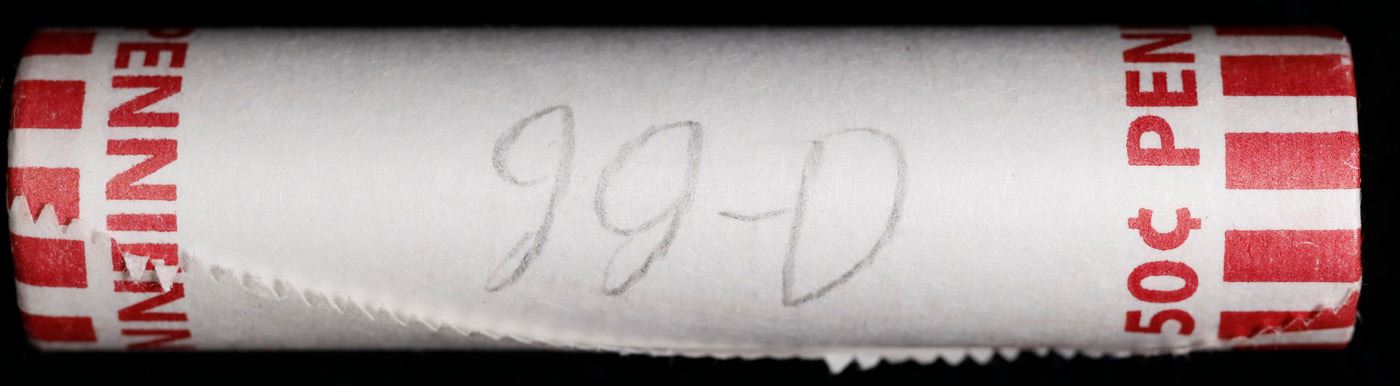 Shotgun Lincoln 1c roll, 1999-d 50 pcs Bank Wrapper.. A terrific Shotgun roll of Lincoln cents. Most if not all coin should be cherry red.