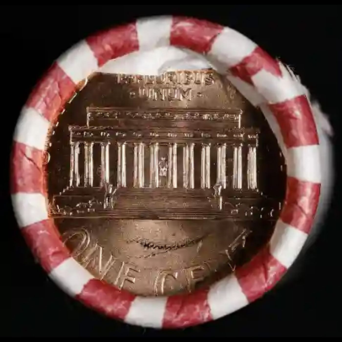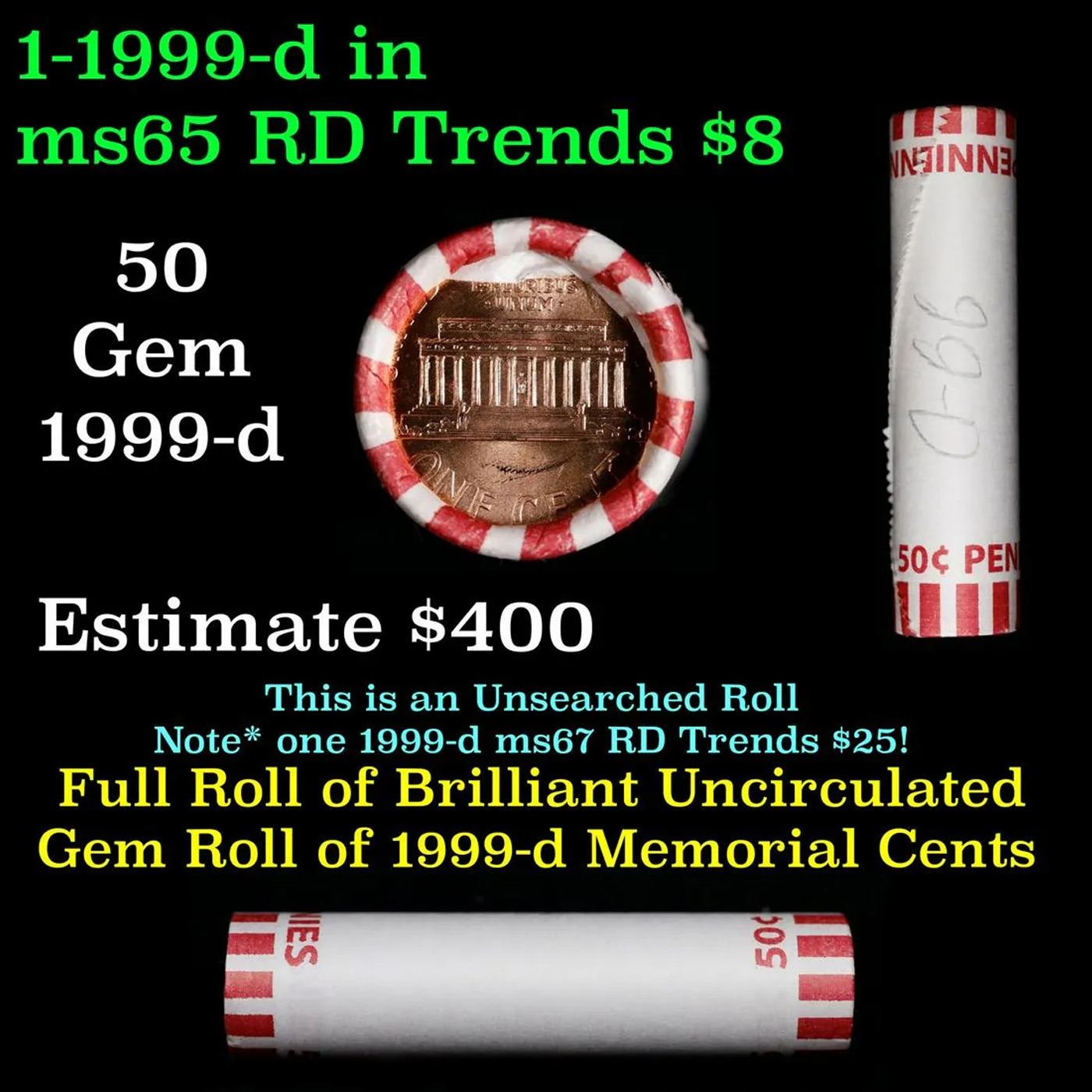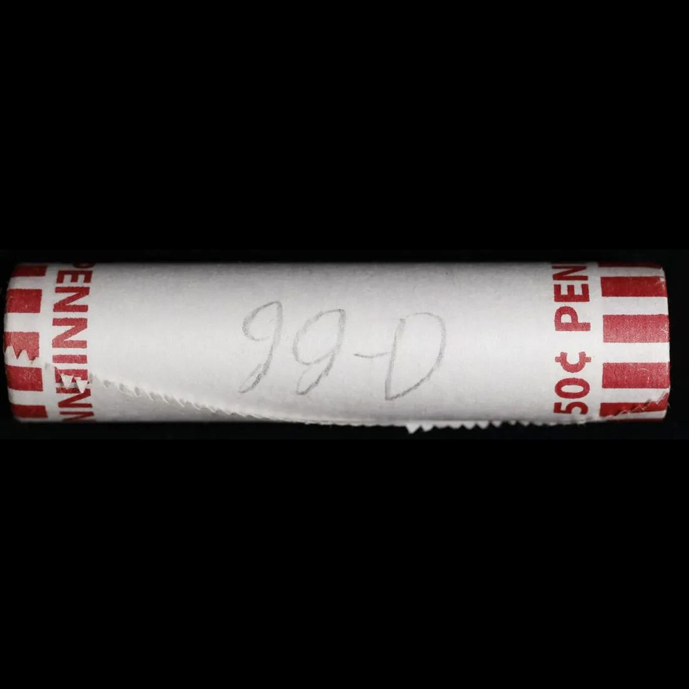 Shotgun Lincoln 1c roll, 1999-d 50 pcs Bank Wrapper.. A terrific Shotgun roll of Lincoln cents. Most if not all coin should be cherry red.