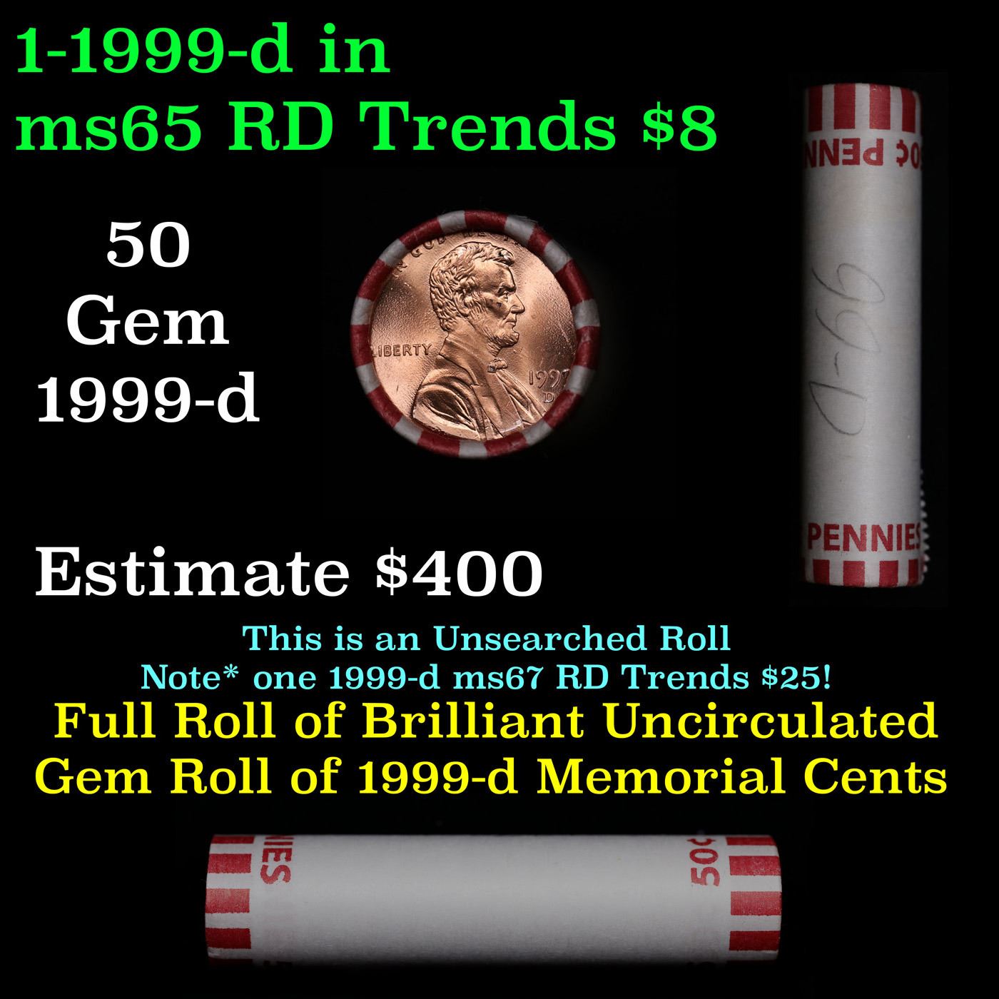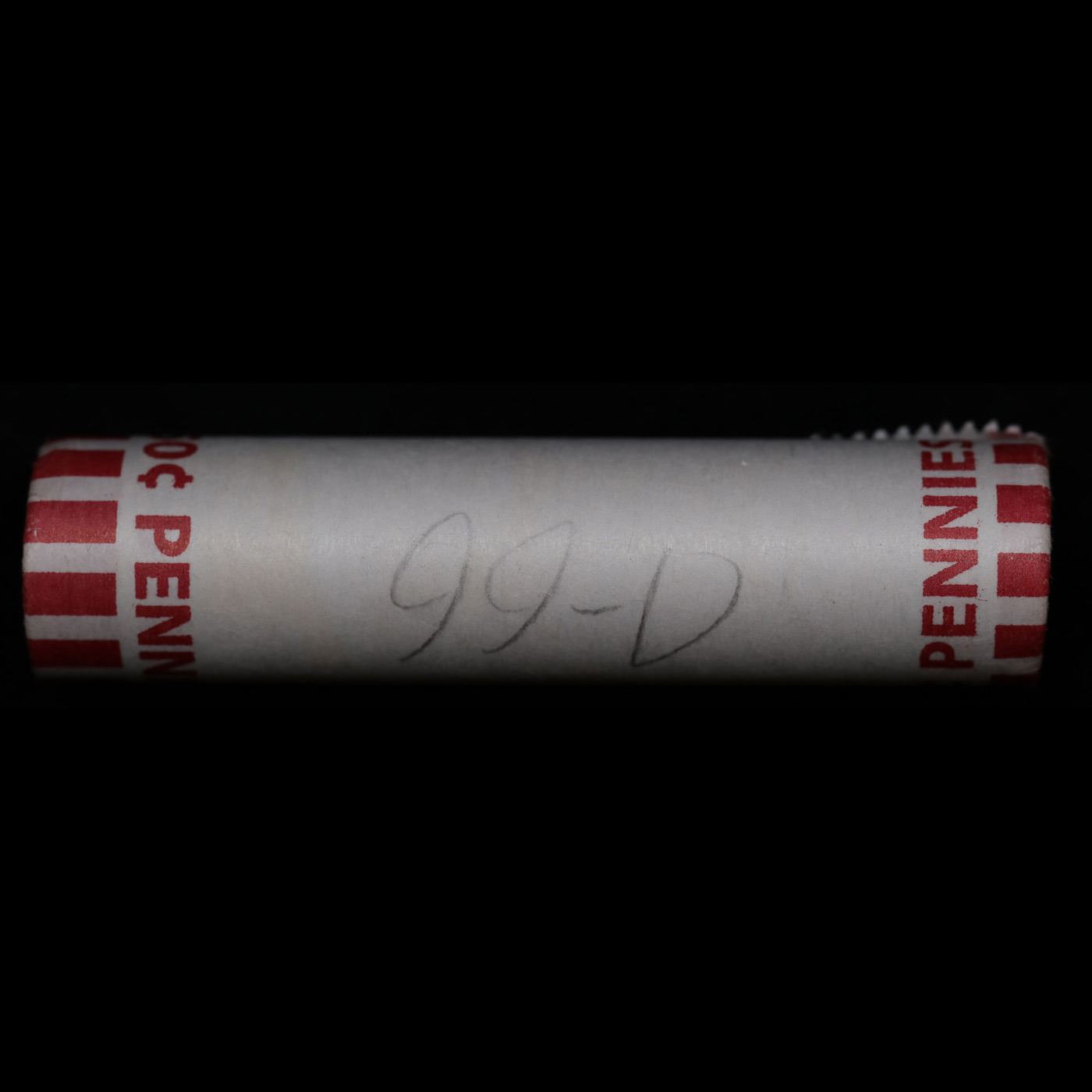 Shotgun Lincoln 1c roll, 1999-d 50 pcs Bank Wrapper.. A terrific Shotgun roll of Lincoln cents. Most if not all coin should be cherry red.