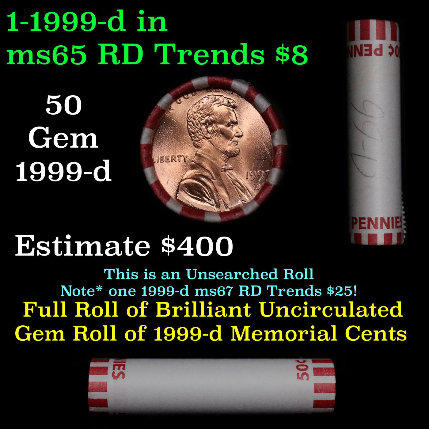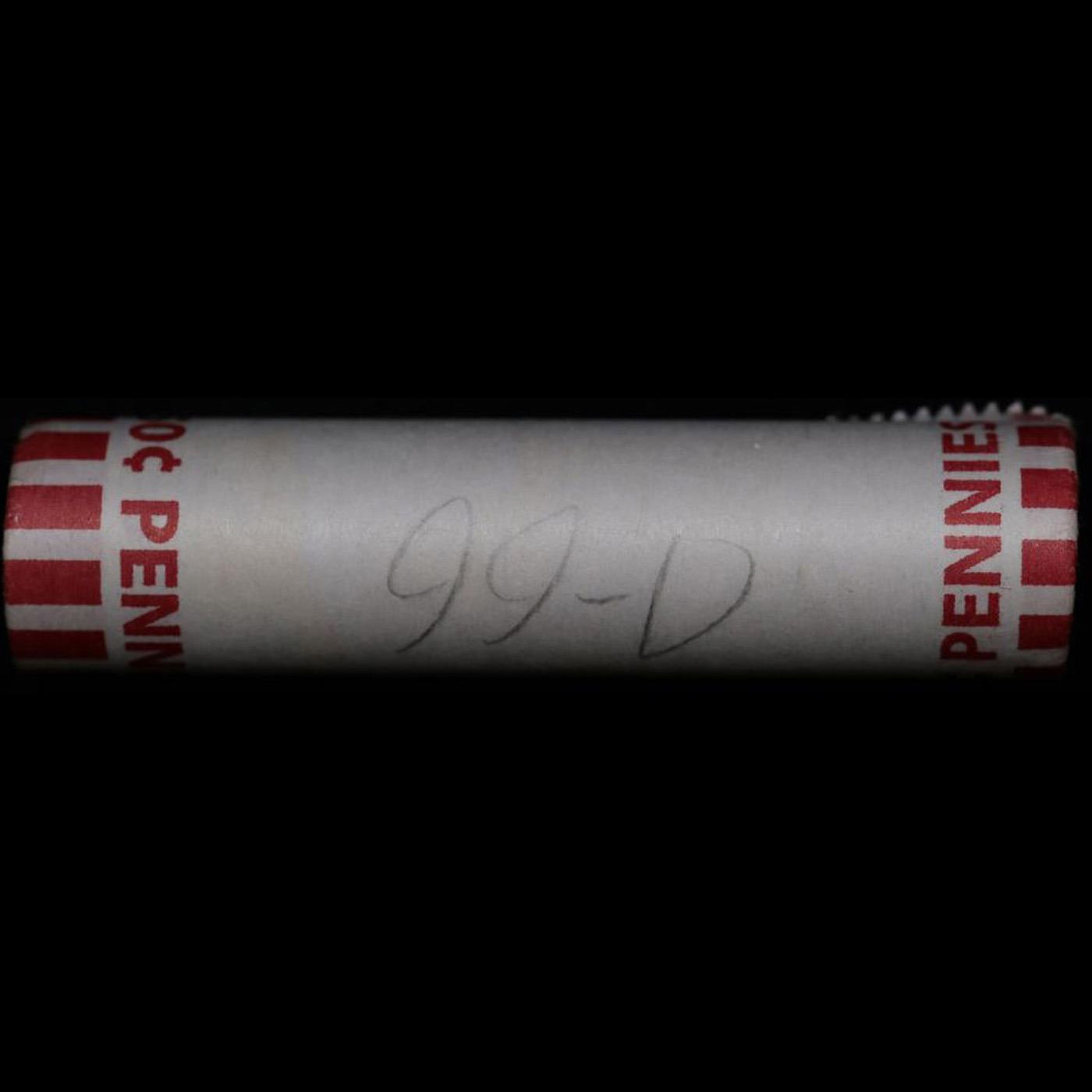 Shotgun Lincoln 1c roll, 1999-d 50 pcs Bank Wrapper.. A terrific Shotgun roll of Lincoln cents. Most if not all coin should be cherry red.
