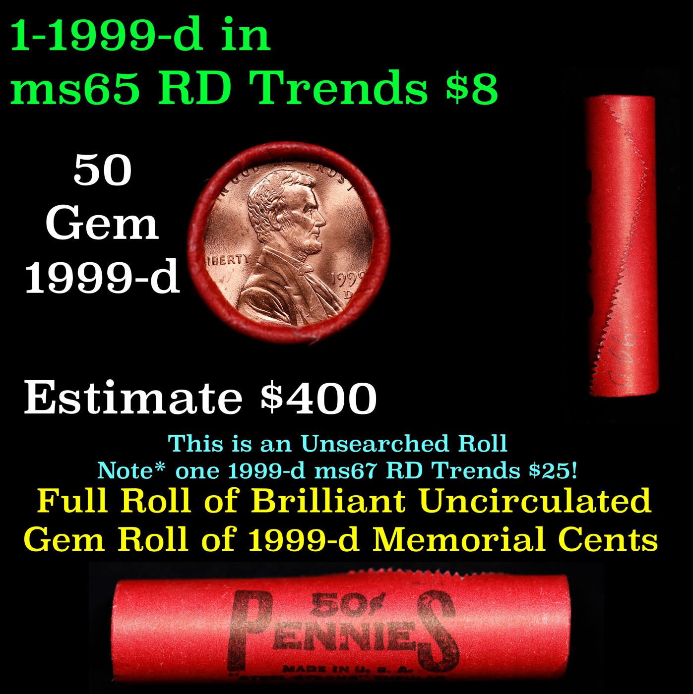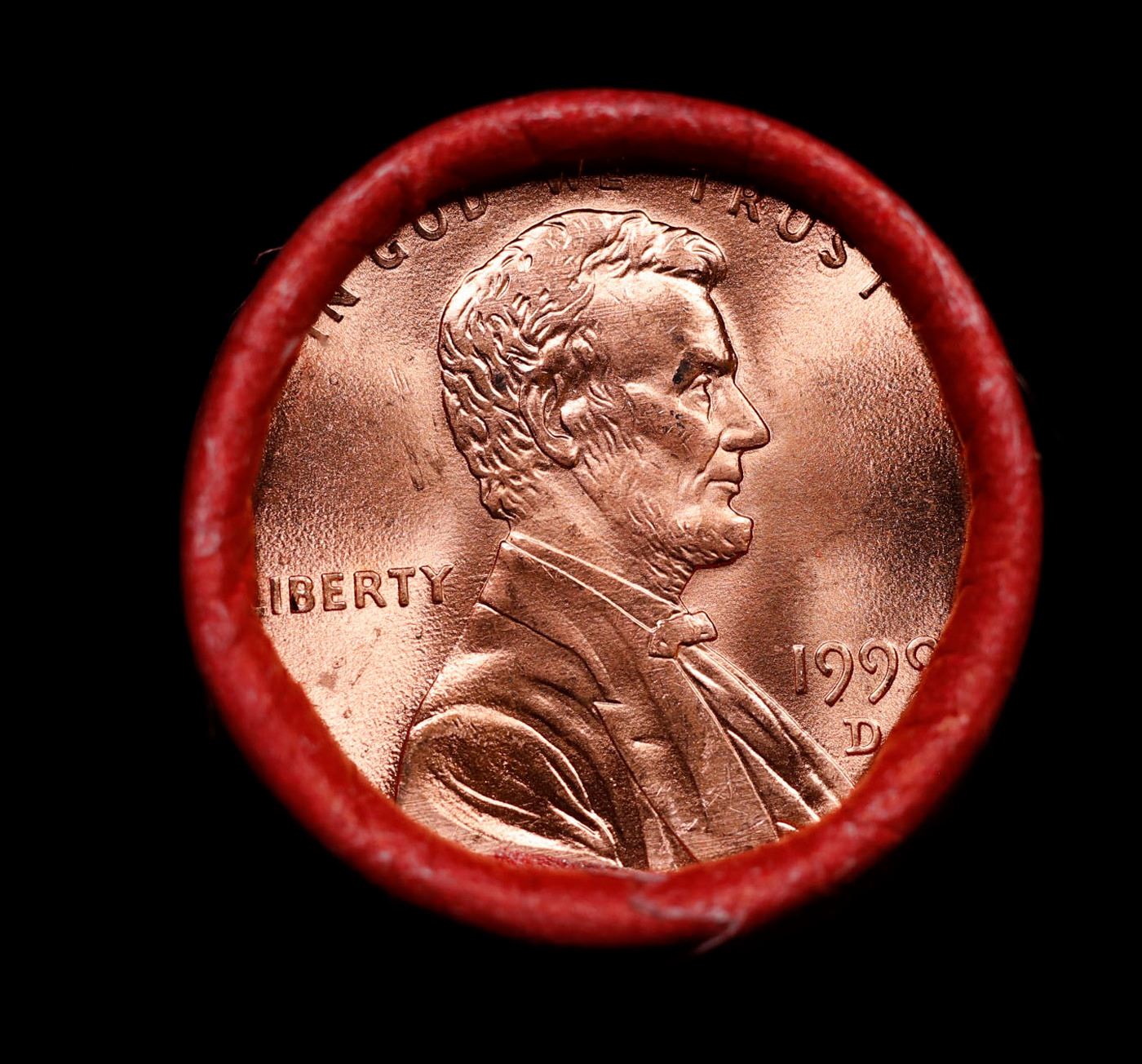Shotgun Lincoln 1c roll, 1999-d 50 pcs Steel-Strong Wrapper.. A terrific Shotgun roll of Lincoln cents. Most if not all coin should be cherry red.