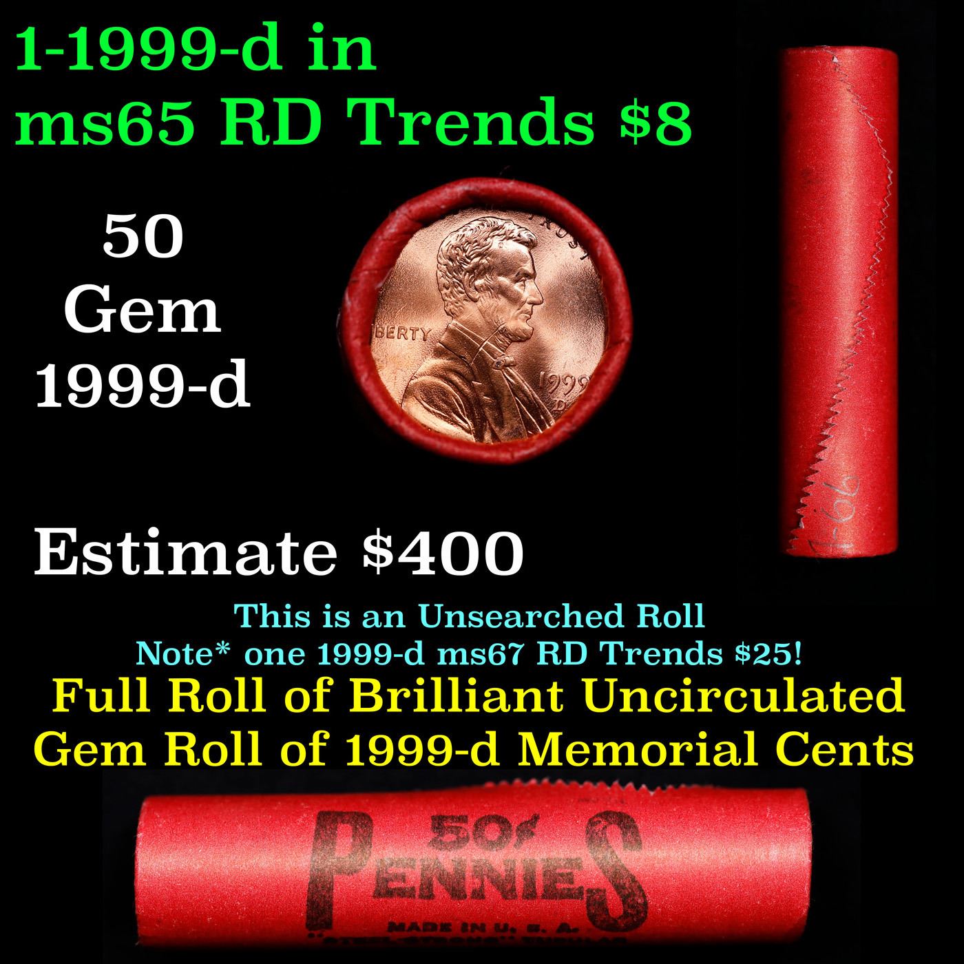 Shotgun Lincoln 1c roll, 1999-d 50 pcs Steel-Strong Wrapper.. A terrific Shotgun roll of Lincoln cents. Most if not all coin should be cherry red.