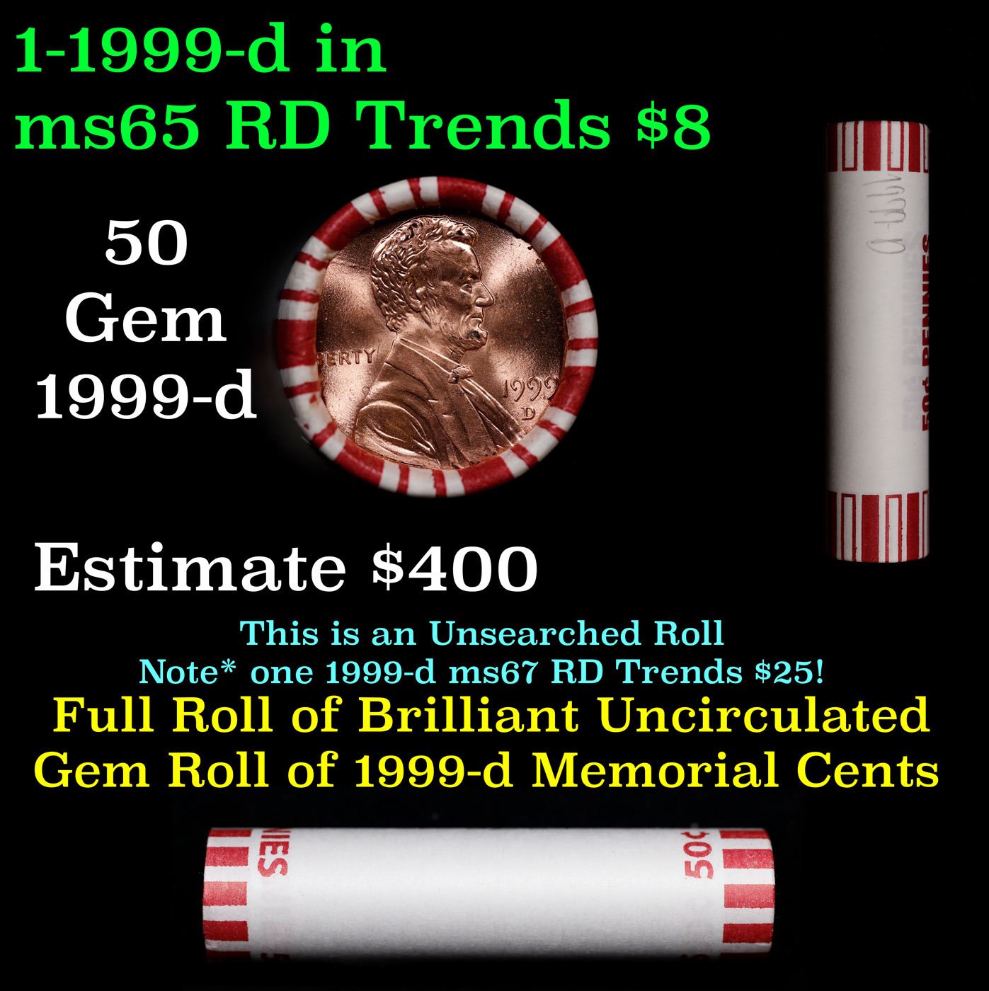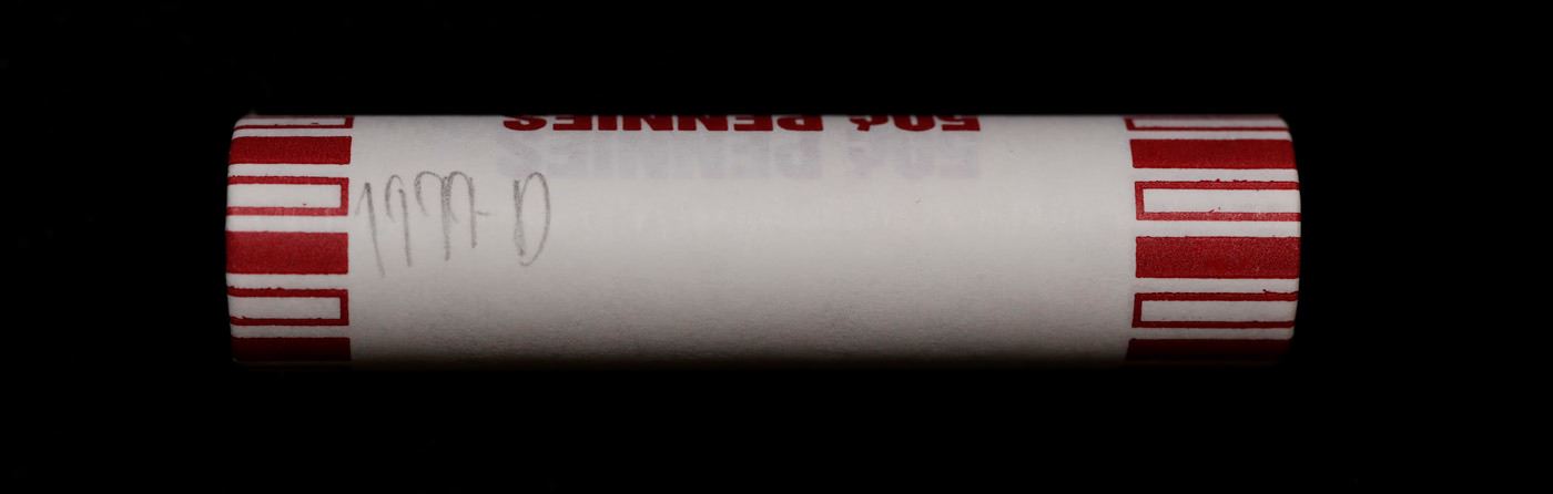 Shotgun Lincoln 1c roll, 1999-d 50 pcs Steel-Strong Wrapper.. A terrific Shotgun roll of Lincoln cents. Most if not all coin should be cherry red.