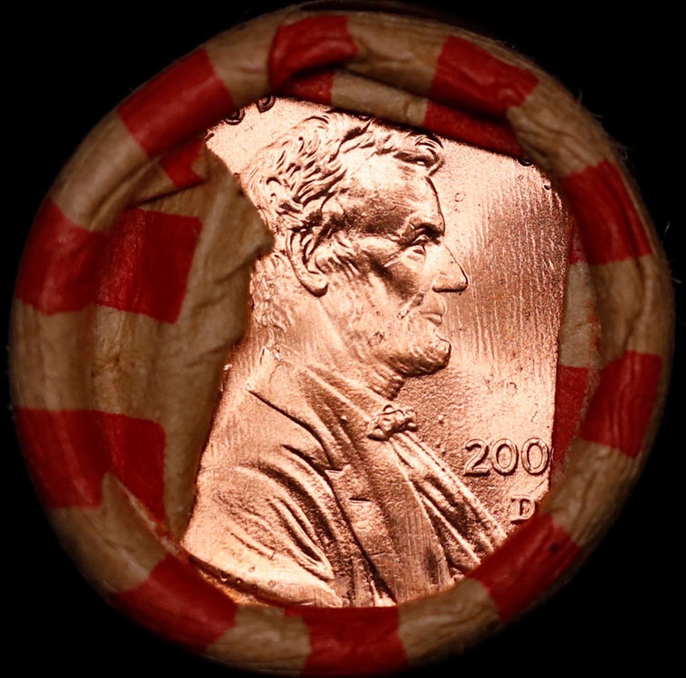 Shotgun Lincoln 1c roll, 2000-d 50 pcs Brandt Wrapper.. The roll is held in an old Rare & Collectable Brinks 'Only Brinks Can Open This Safe, Chicago IL' Penny wrapper. Actual roll pictured is the roll you will get. A great original bank shotgun roll with very tight ends. We have opened a few of these rolls. They seem to be mixed small cents including Indians, Wheats, Steel cents & some Flying Eagles mixed in. These shotgun rolls are all from a new consignee. They are all frrom one Estate.