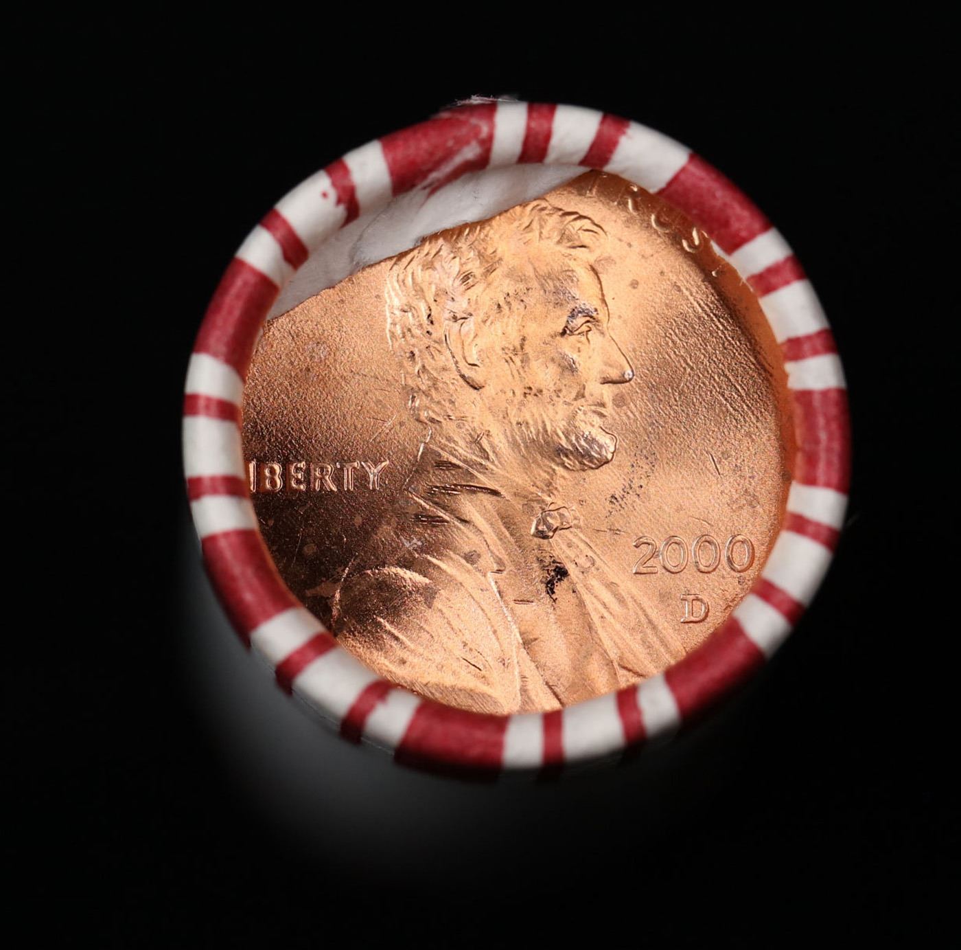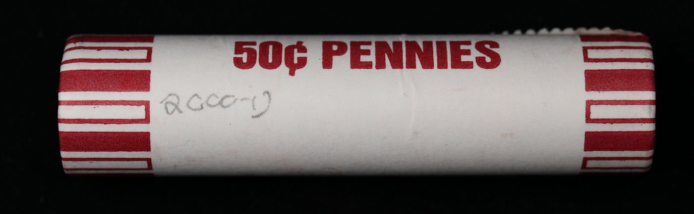 Shotgun Lincoln 1c roll, 2000-d 50 pcs Steel-Strong Wrapper.. A terrific Shotgun roll of Lincoln cents. Most if not all coin should be cherry red.