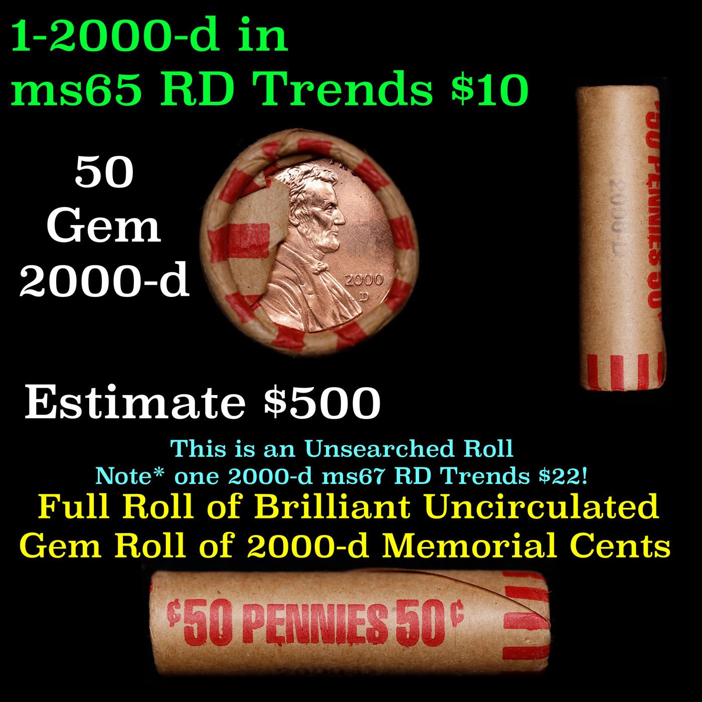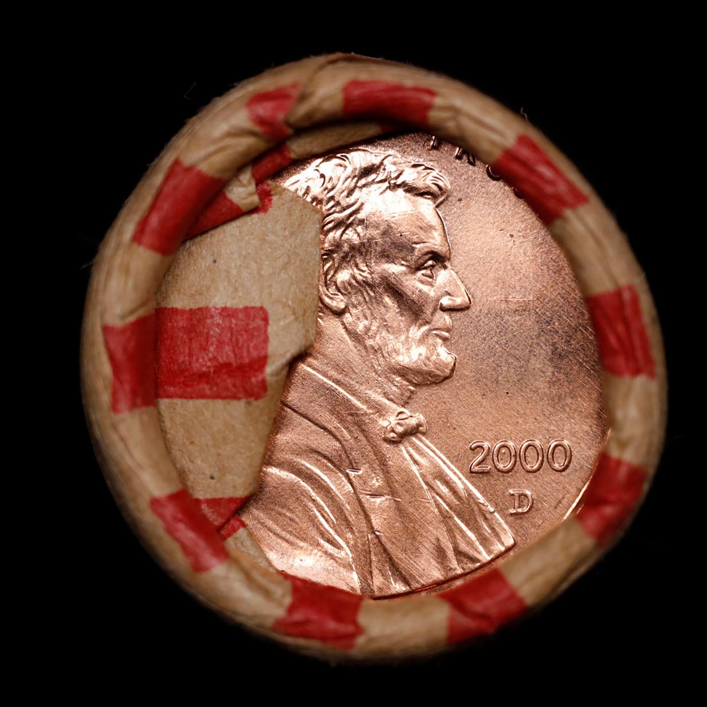 Shotgun Lincoln 1c roll, 2000-d 50 pcs Vintage Penny Wrapper.. A terrific Shotgun roll of Lincoln cents. Most if not all coin should be cherry red.