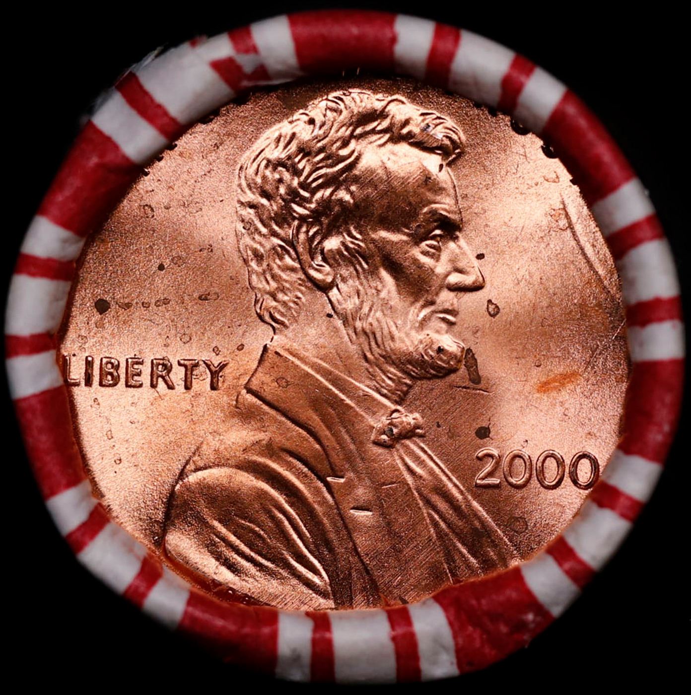 Shotgun Lincoln 1c roll, 2000-p 50 pcs Bank Wrapper. A terrific Shotgun roll of Lincoln cents. Most if not all coin should be cherry red.