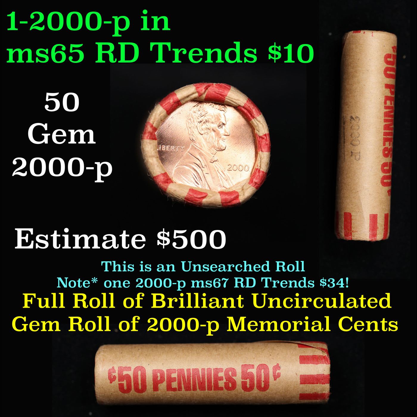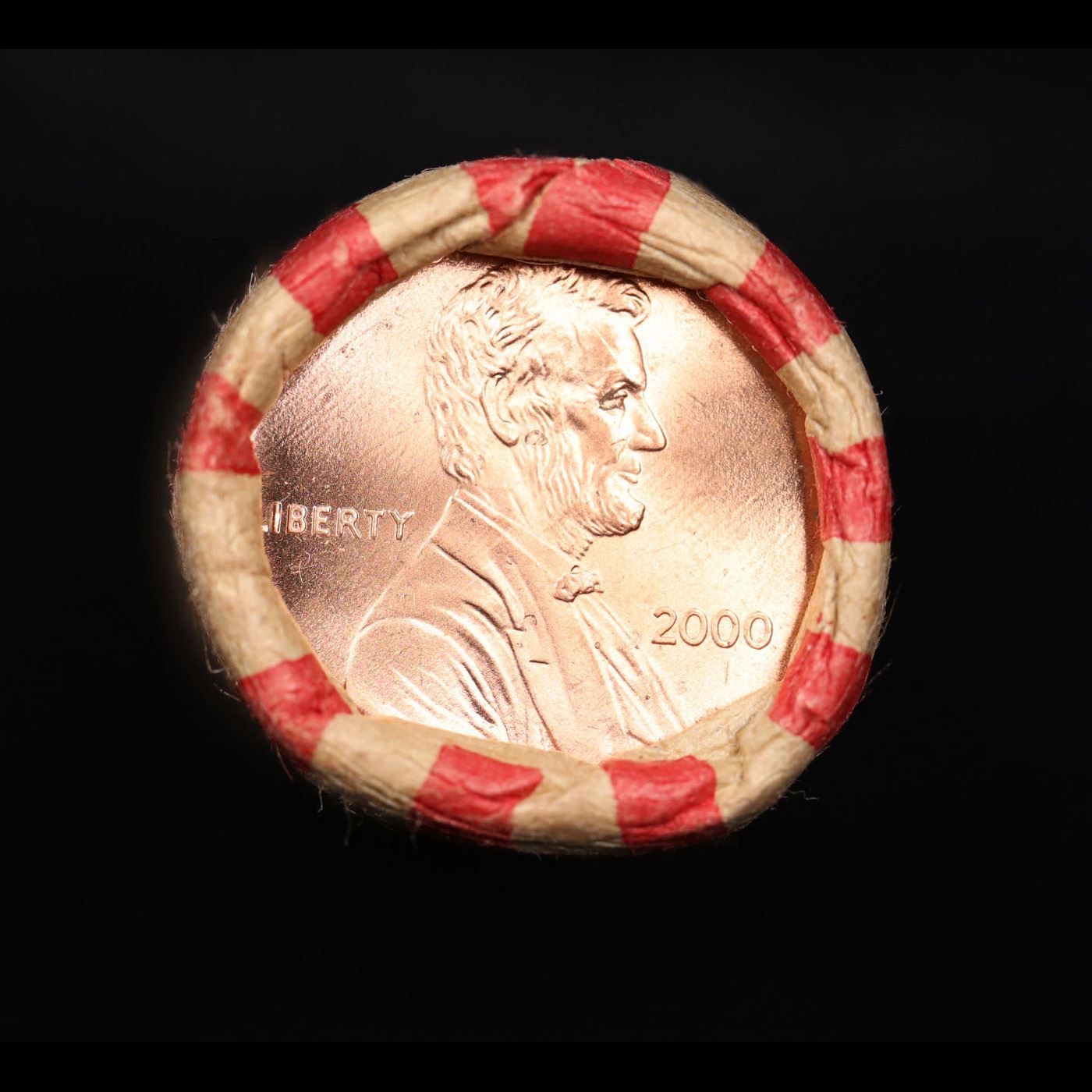 Shotgun Lincoln 1c roll, 2000-p 50 pcs Penny Wrapper.. A terrific Shotgun roll of Lincoln cents. Most if not all coin should be cherry red.