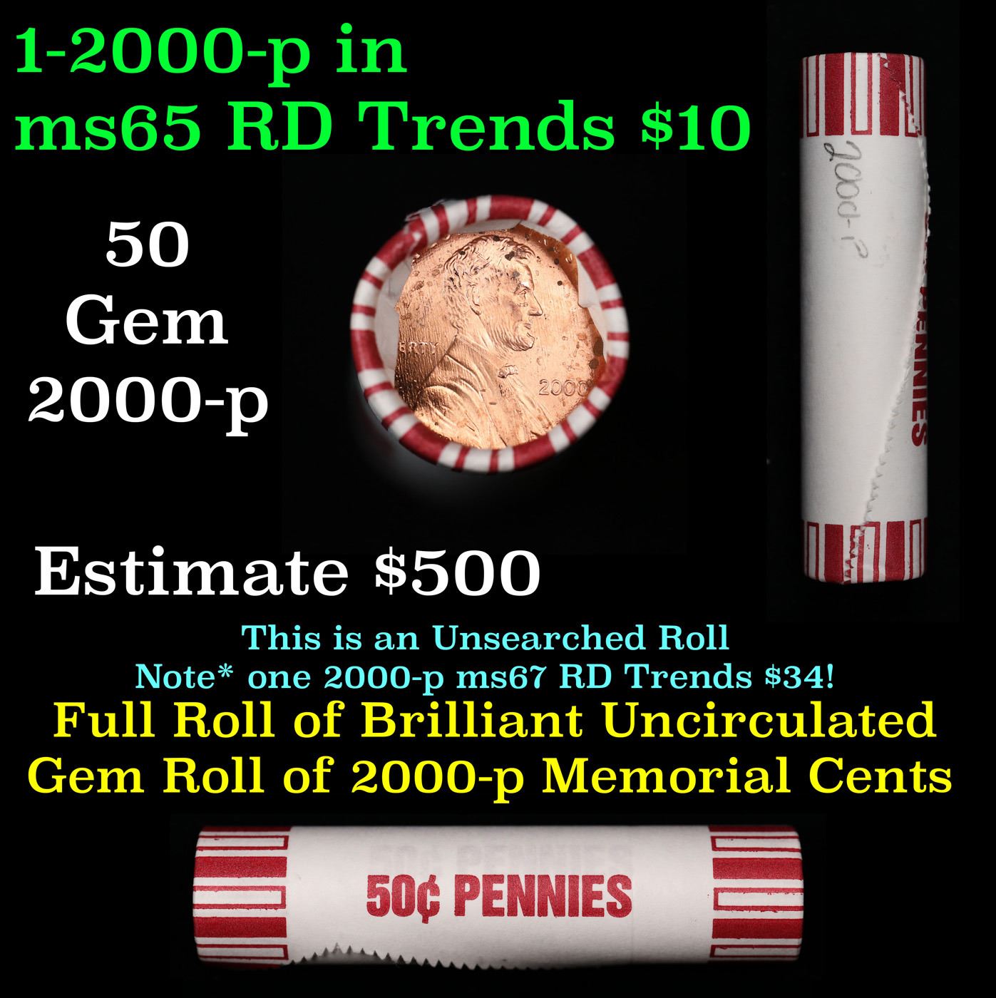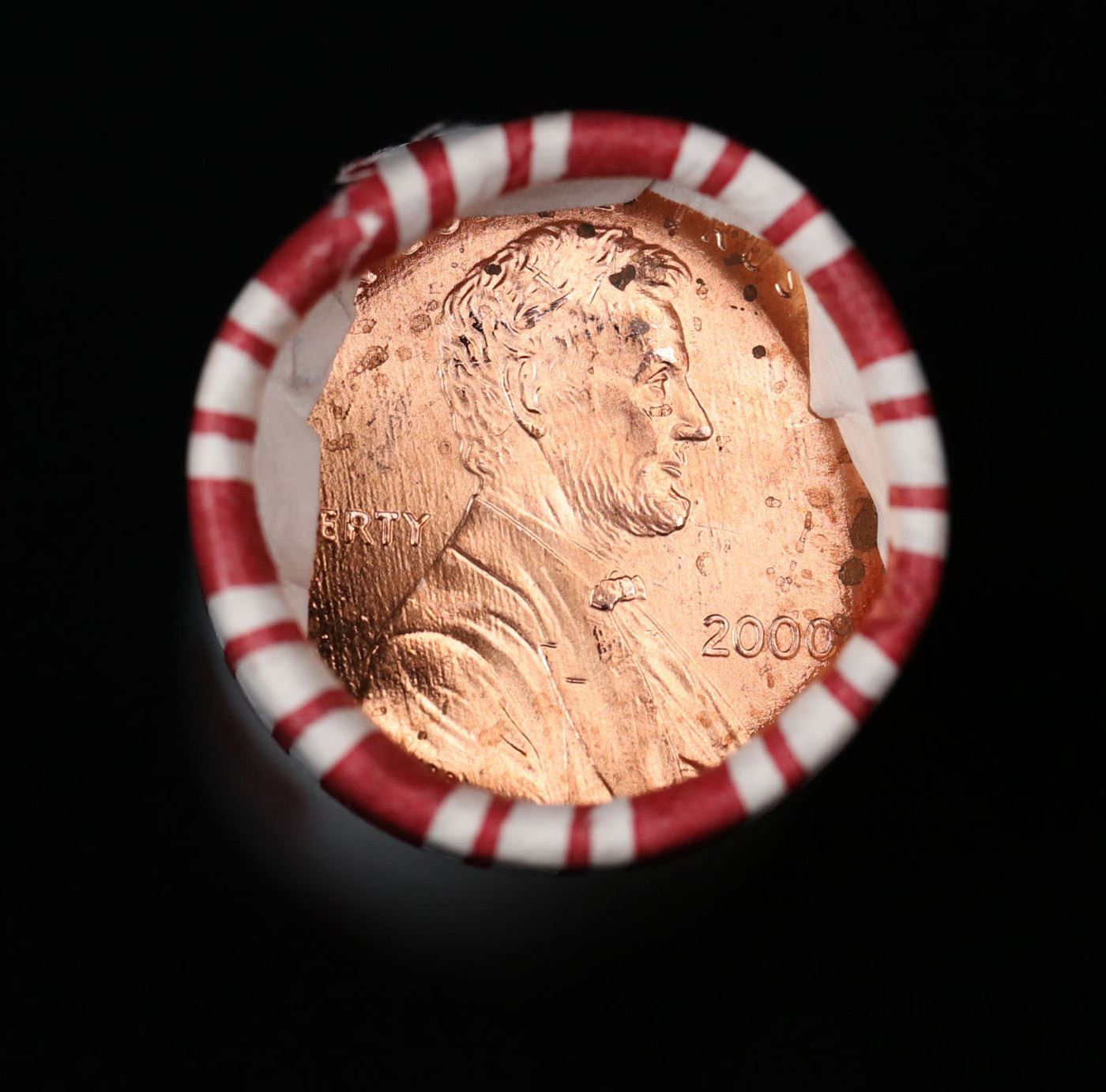 Shotgun Lincoln 1c roll, 2000-p 50 pcs Steel-Strong Wrapper.. A terrific Shotgun roll of Lincoln cents. Most if not all coin should be cherry red.