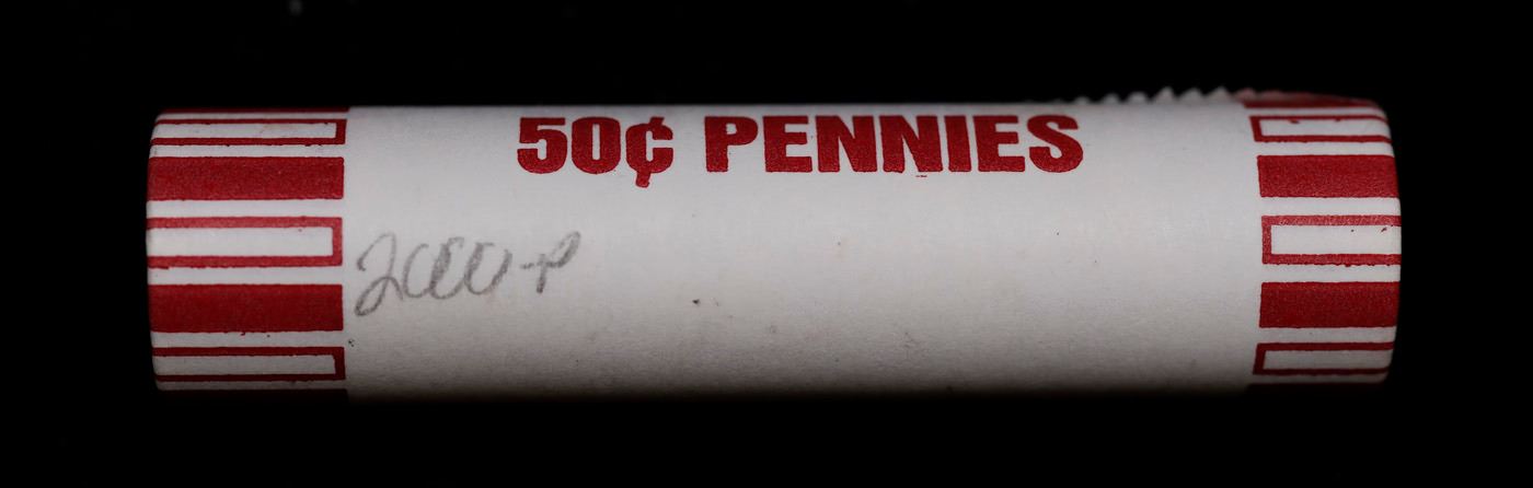 Shotgun Lincoln 1c roll, 2000-p 50 pcs Steel-Strong Wrapper.. A terrific Shotgun roll of Lincoln cents. Most if not all coin should be cherry red.