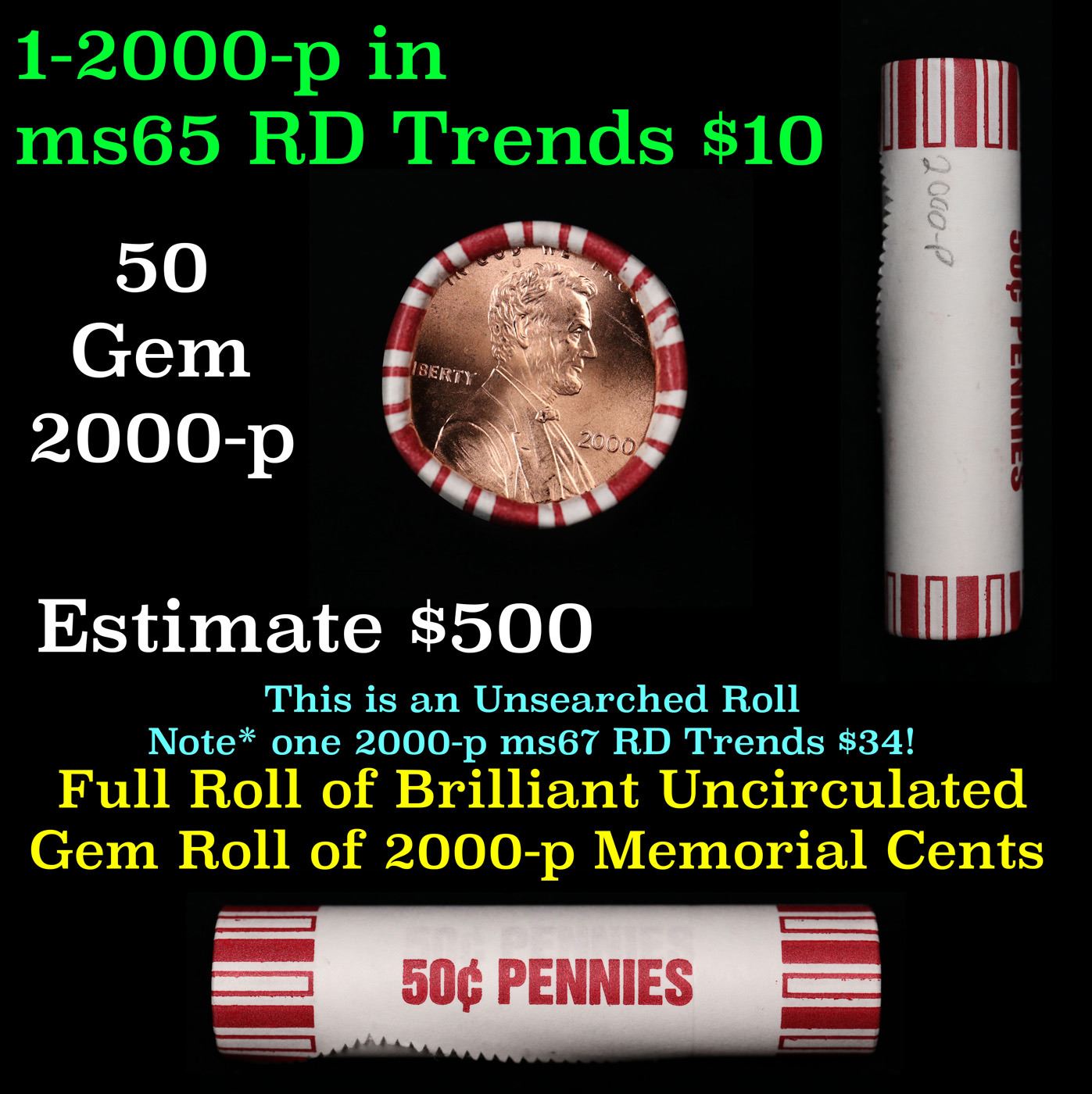 Shotgun Lincoln 1c roll, 2000-p 50 pcs Steel-Strong Wrapper.. A terrific Shotgun roll of Lincoln cents. Most if not all coin should be cherry red.