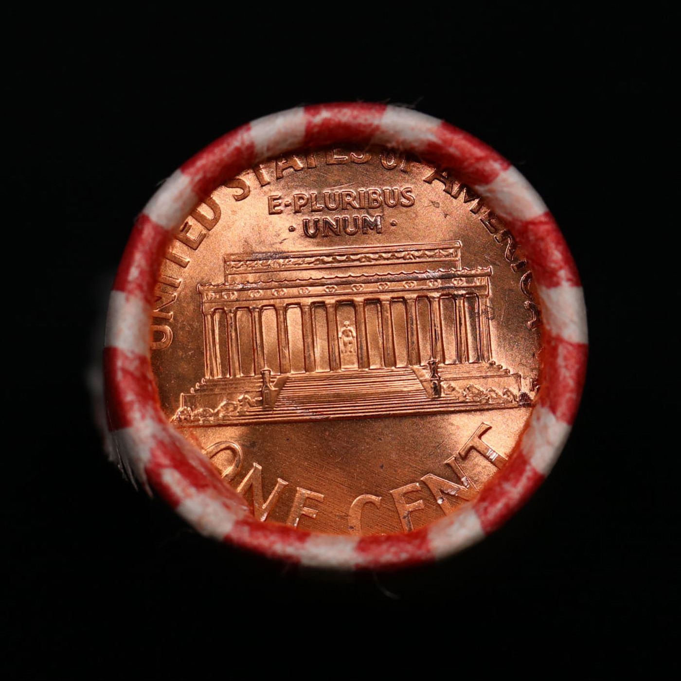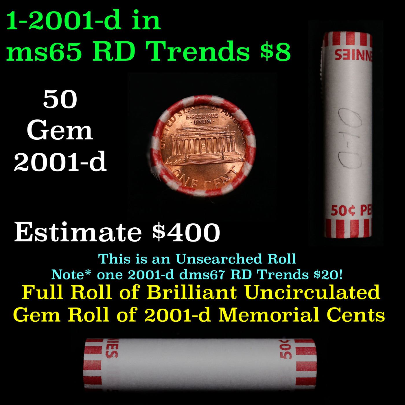 Shotgun Lincoln 1c roll, 2001-d 50 pcs Bank Wrapper.. A terrific Shotgun roll of Lincoln cents. Most if not all coin should be cherry red.