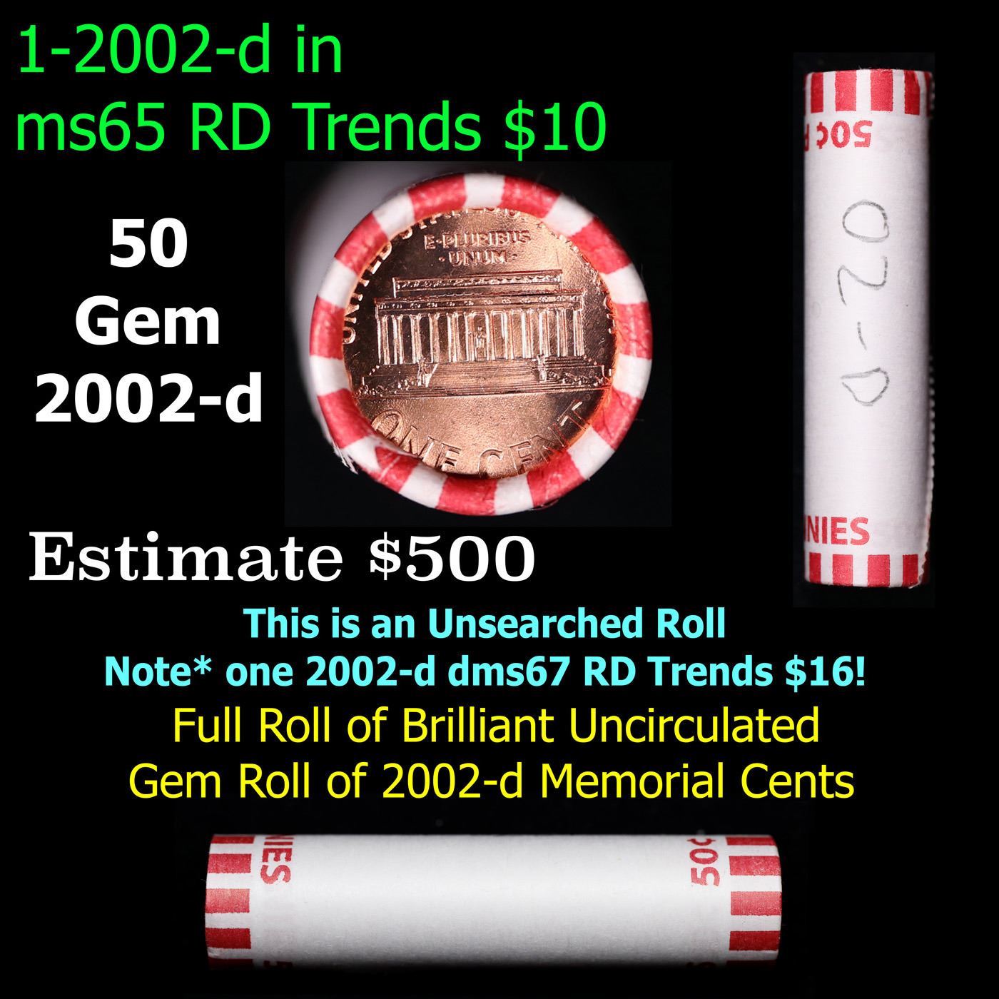 Shotgun Lincoln 1c roll, 2002-d 50 pcs Bank Wrapper.. A terrific Shotgun roll of Lincoln cents. Most if not all coin should be cherry red.