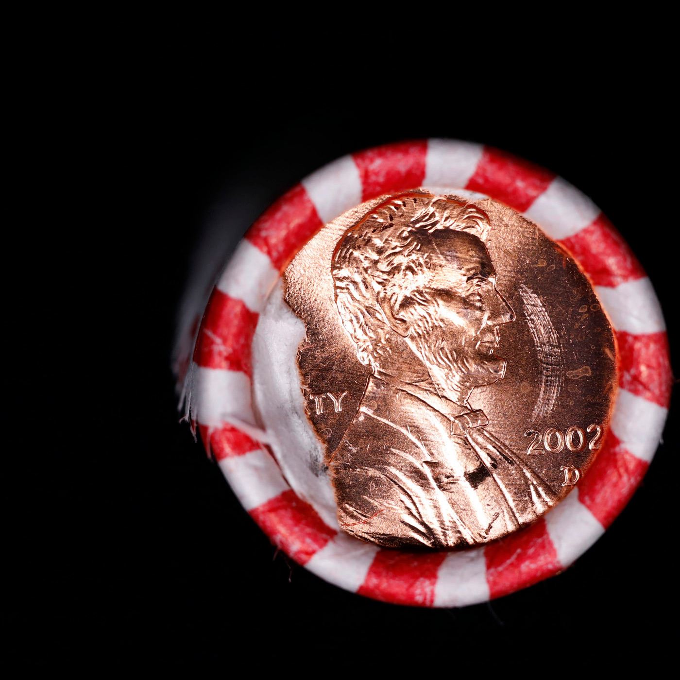 Shotgun Lincoln 1c roll, 2002-d 50 pcs Bank Wrapper.. A terrific Shotgun roll of Lincoln cents. Most if not all coin should be cherry red.