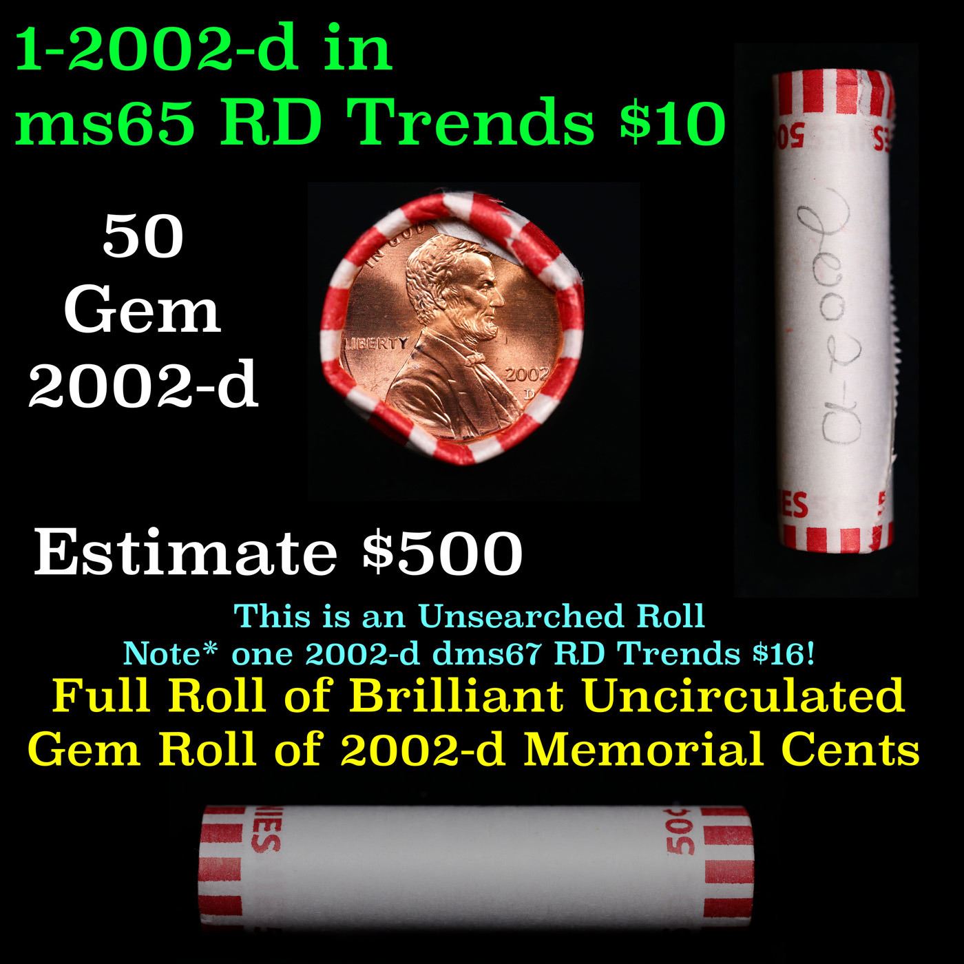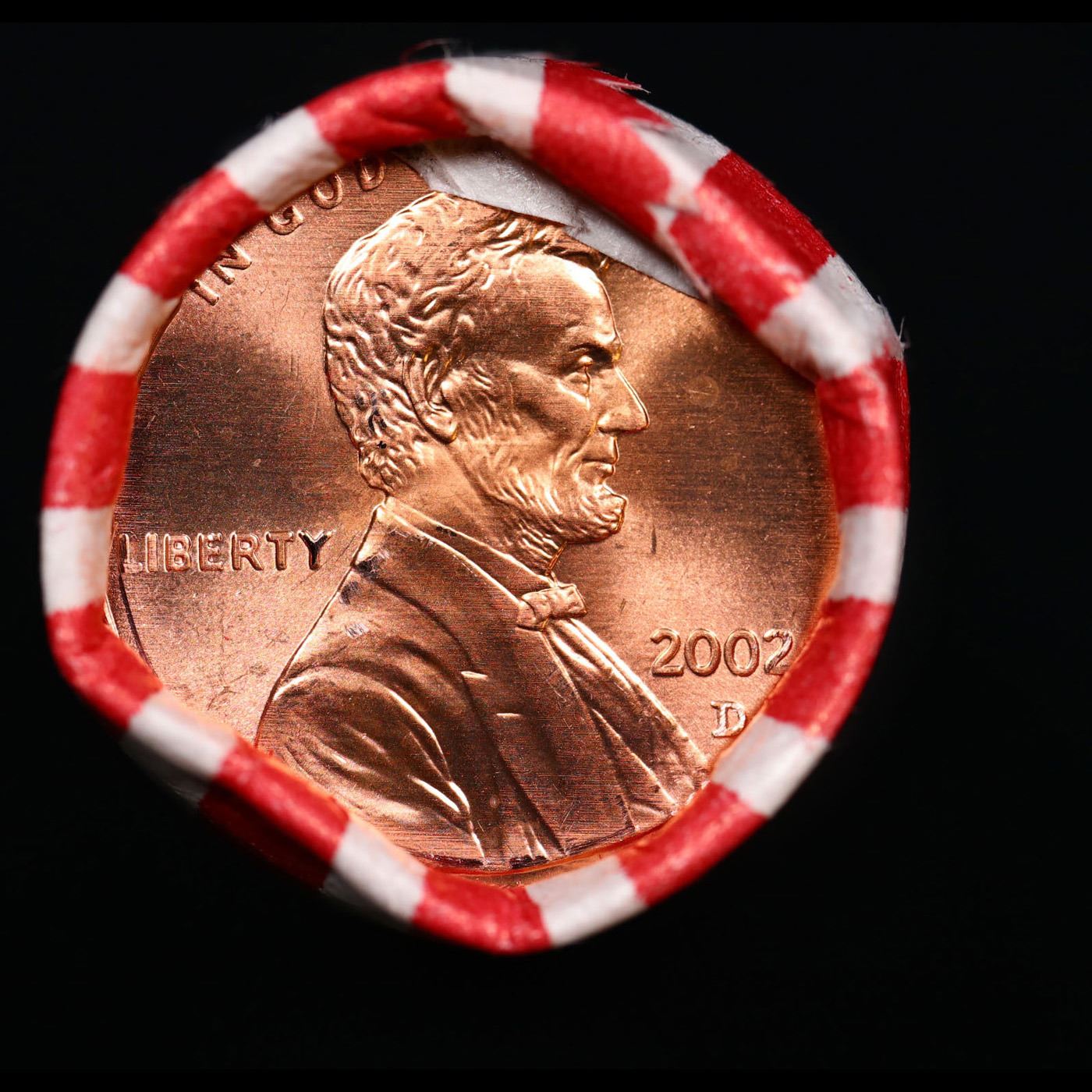 Shotgun Lincoln 1c roll, 2002-d 50 pcs Bank Wrapper.. A terrific Shotgun roll of Lincoln cents. Most if not all coin should be cherry red.