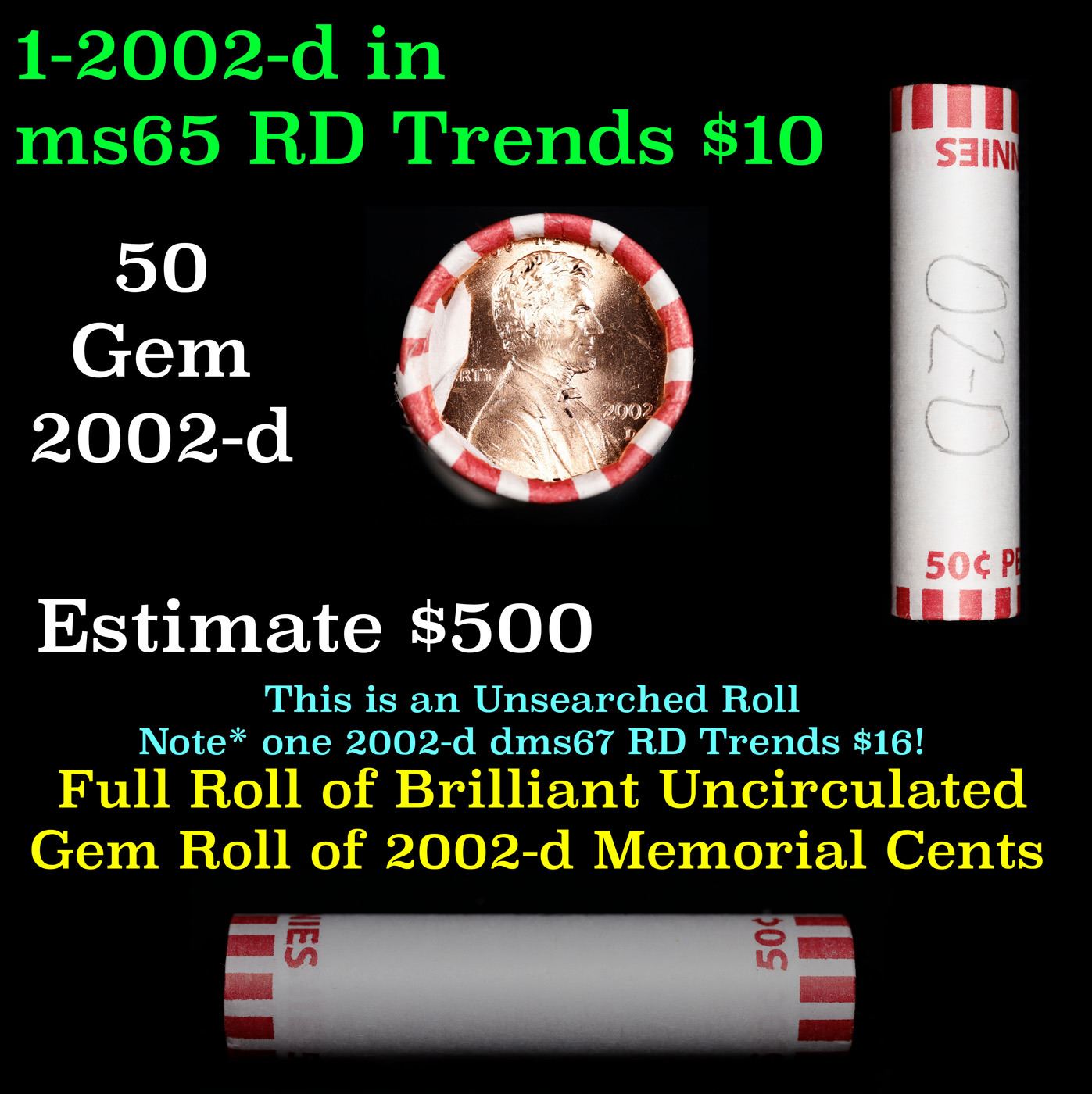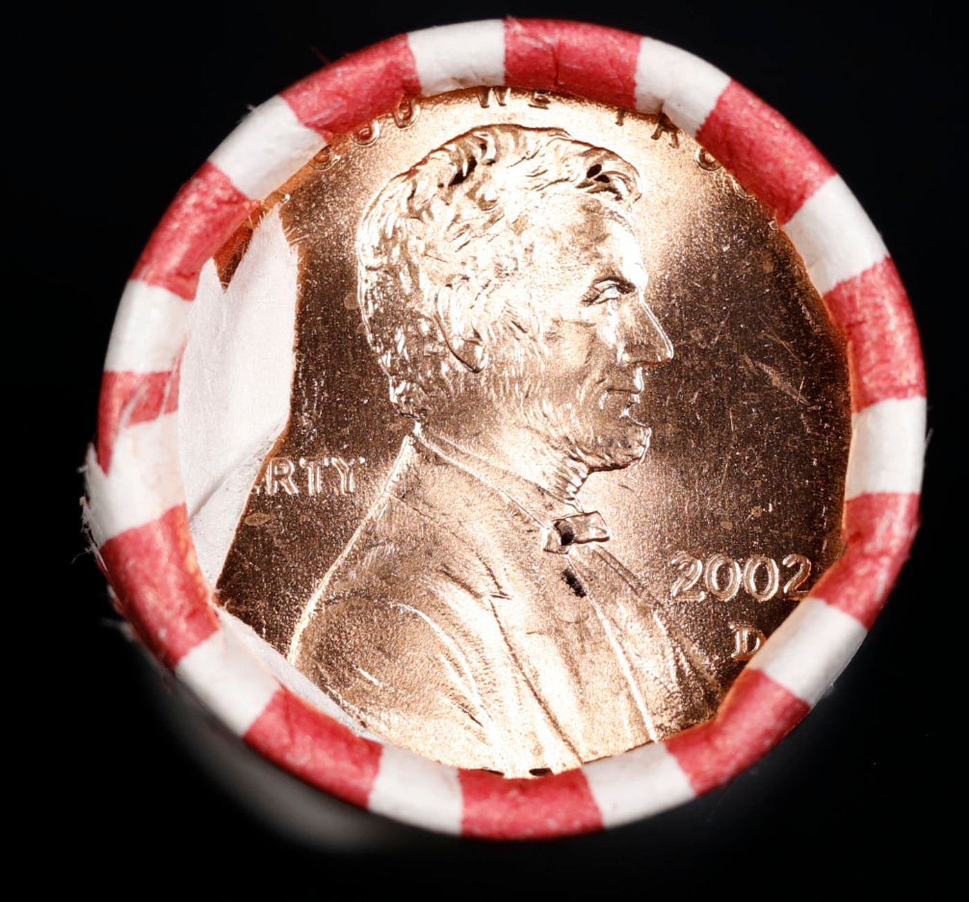 Shotgun Lincoln 1c roll, 2002-d 50 pcs Bank Wrapper.. A terrific Shotgun roll of Lincoln cents. Most if not all coin should be cherry red.