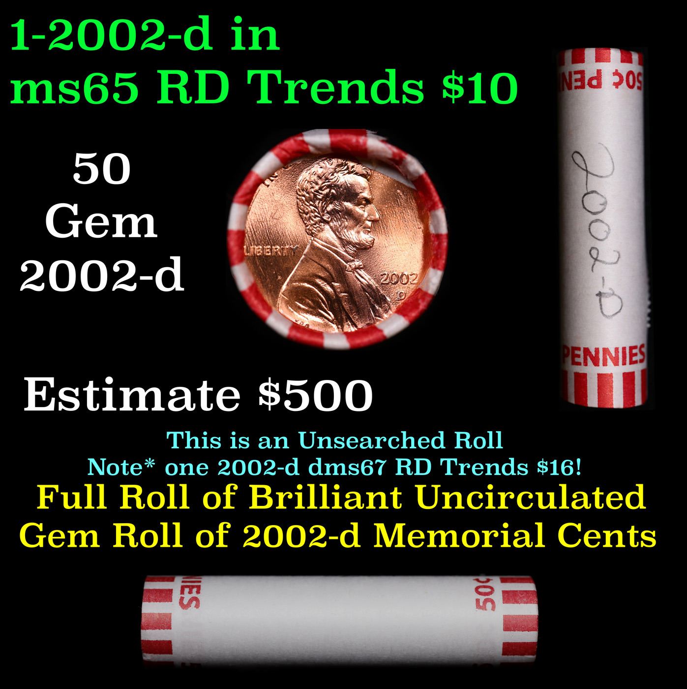 Shotgun Lincoln 1c roll, 2002-d 50 pcs Bank Wrapper.. A terrific Shotgun roll of Lincoln cents. Most if not all coin should be cherry red.