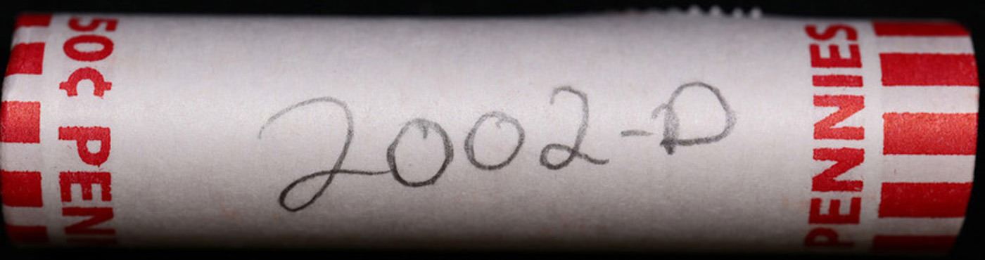 Shotgun Lincoln 1c roll, 2002-d 50 pcs Bank Wrapper.. A terrific Shotgun roll of Lincoln cents. Most if not all coin should be cherry red.