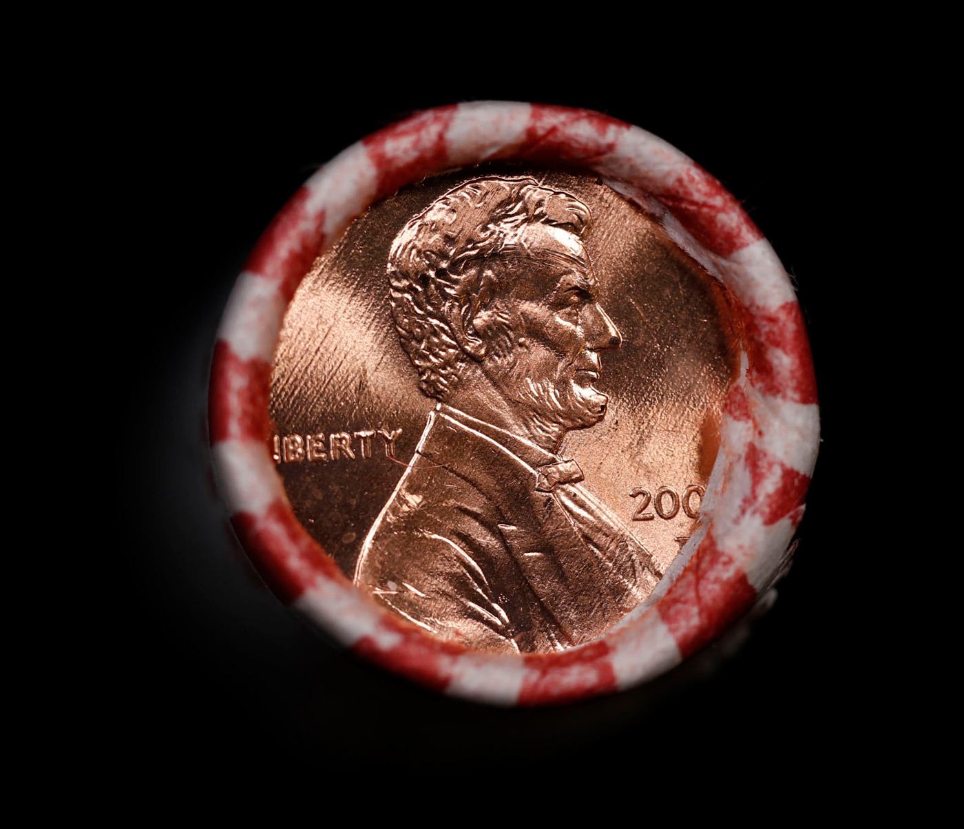 Shotgun Lincoln 1c roll, 2002-d 50 pcs Bank Wrapper.. A terrific Shotgun roll of Lincoln cents. Most if not all coin should be cherry red.