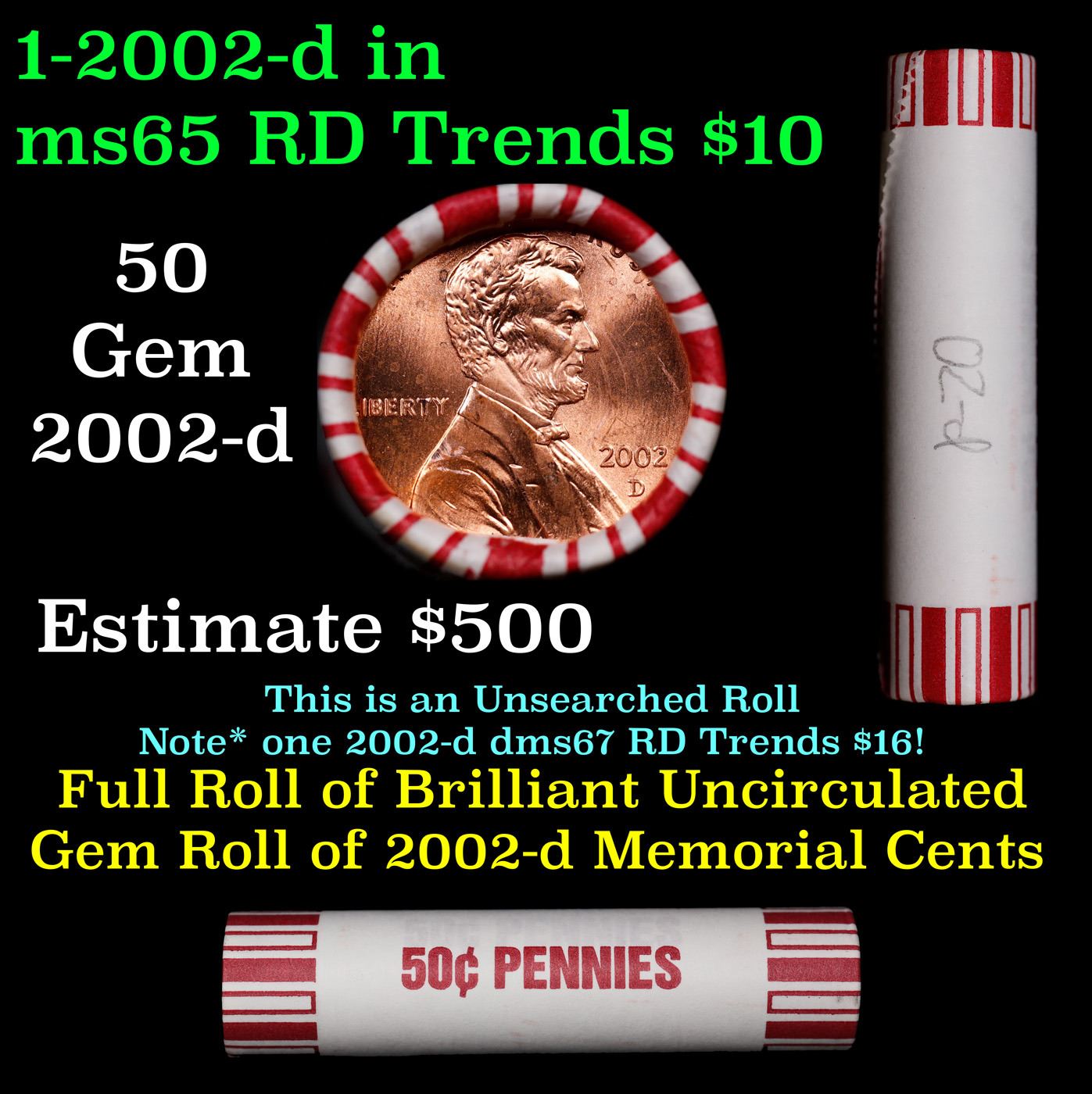 Shotgun Lincoln 1c roll, 2002-d 50 pcs Brandt 50c Wrapper.. A terrific Shotgun roll of Lincoln cents. Most if not all coin should be cherry red.