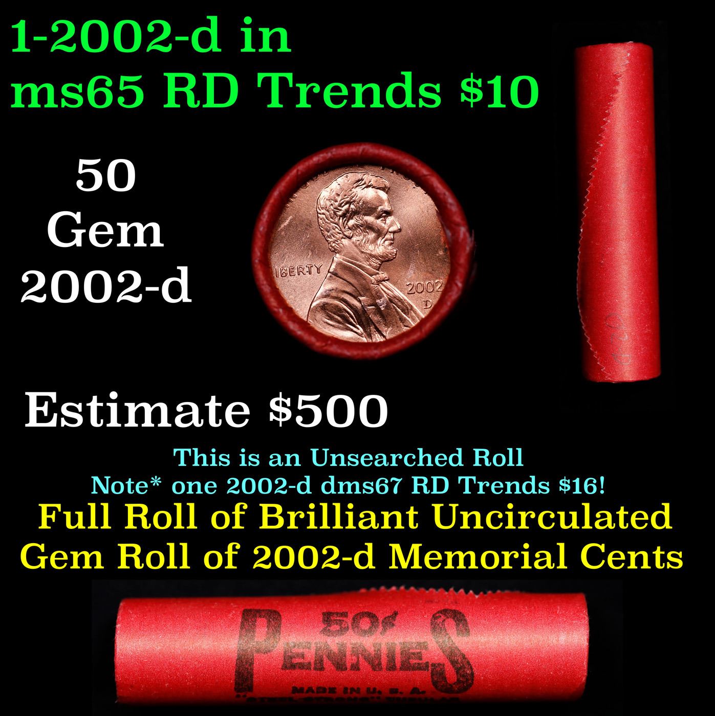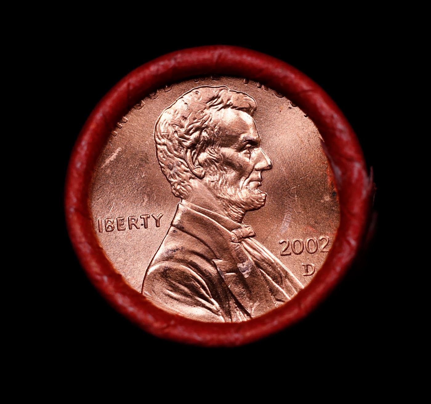 Shotgun Lincoln 1c roll, 2002-d 50 pcs Steel-Strong Wrapper.. A terrific Shotgun roll of Lincoln cents. Most if not all coin should be cherry red.