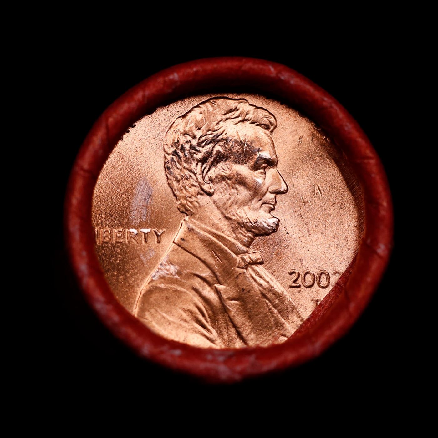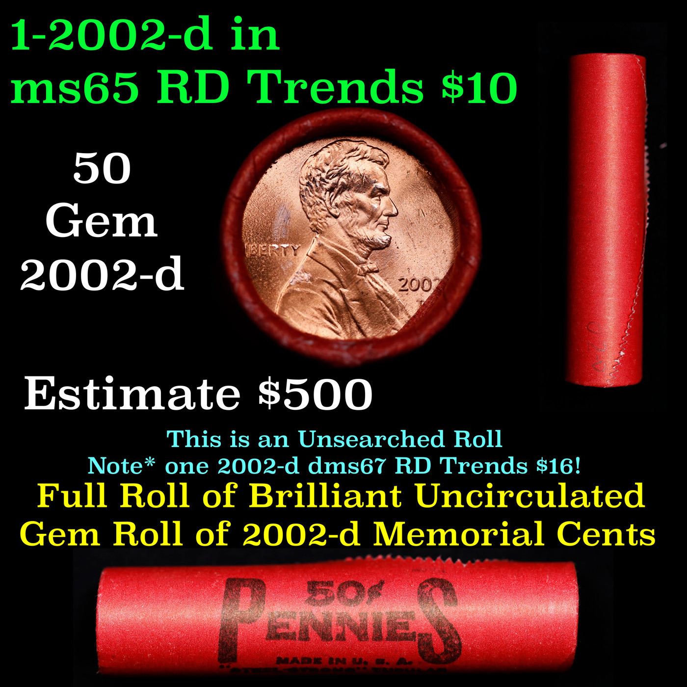 Shotgun Lincoln 1c roll, 2002-d 50 pcs Steel-Strong Wrapper.. A terrific Shotgun roll of Lincoln cents. Most if not all coin should be cherry red.