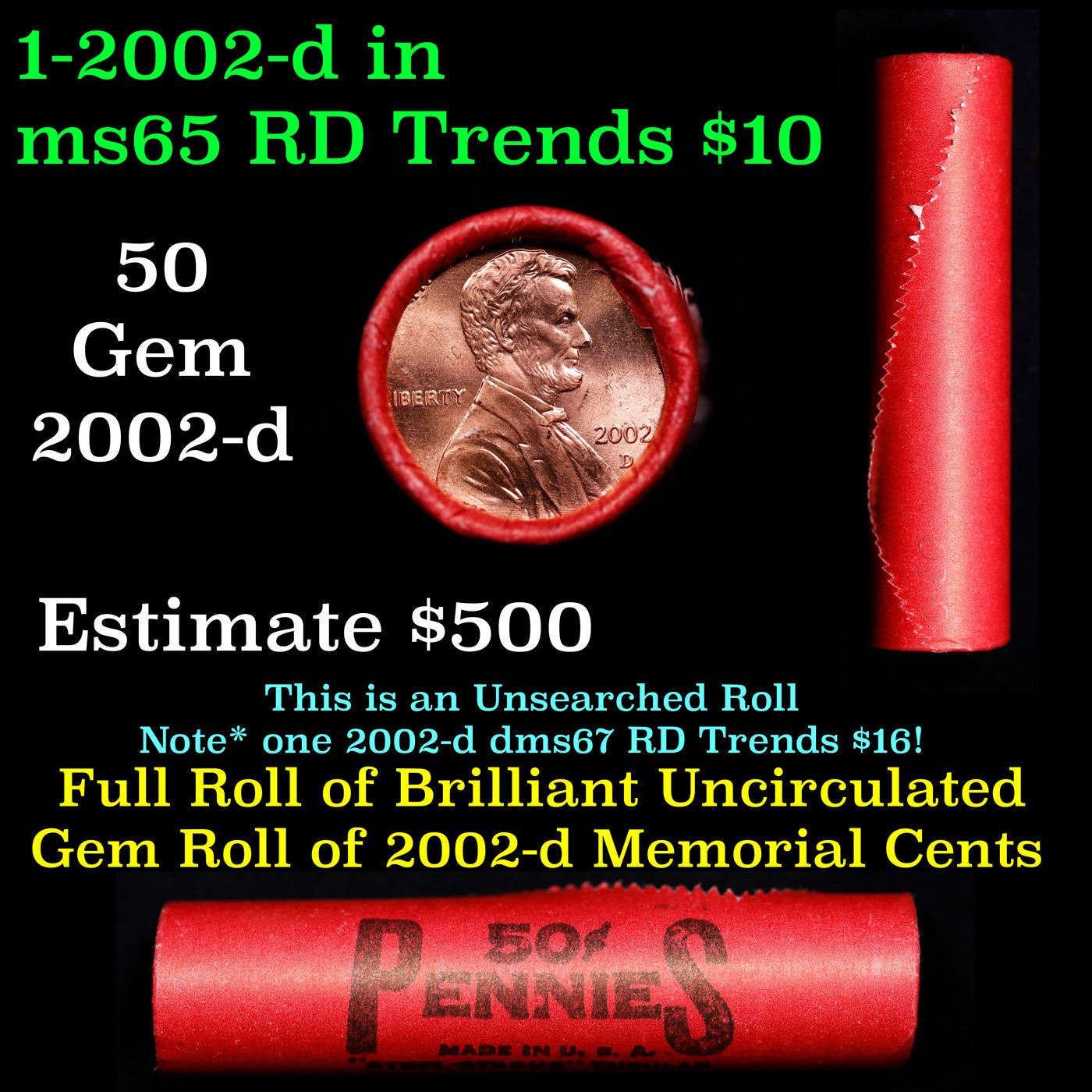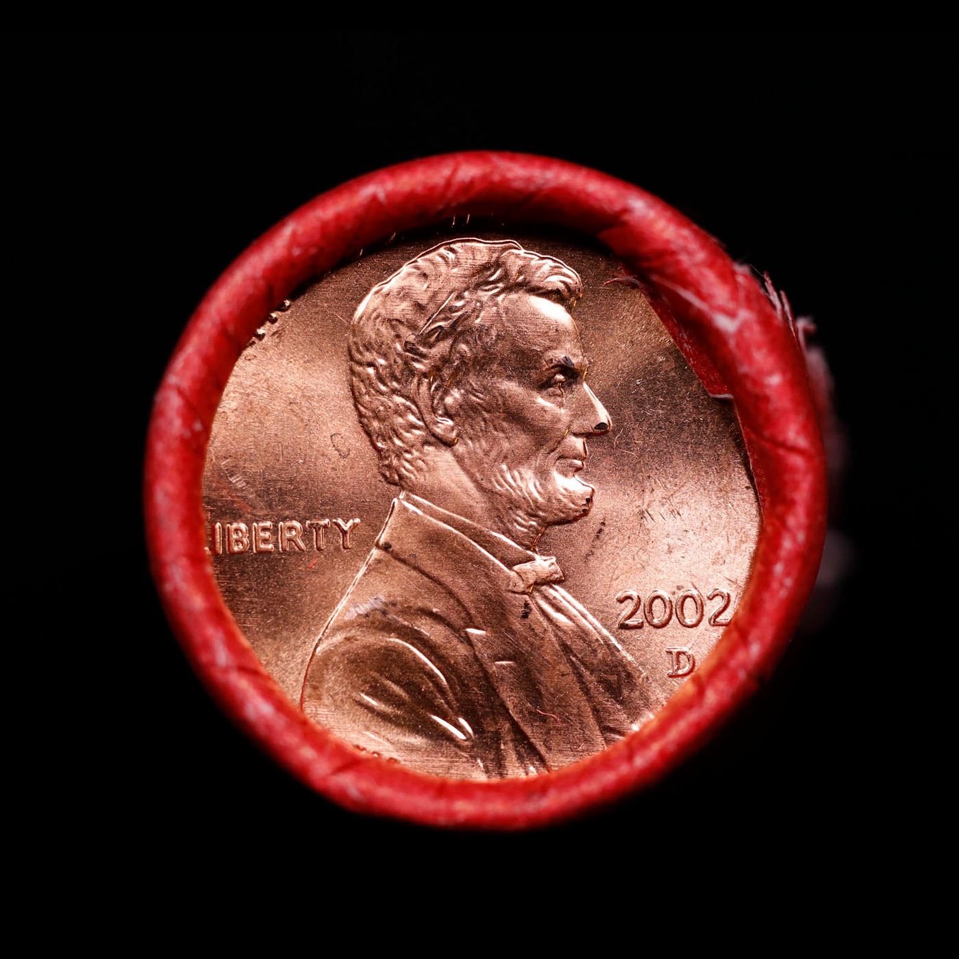 Shotgun Lincoln 1c roll, 2002-d 50 pcs Steel-Strong Wrapper.. A terrific Shotgun roll of Lincoln cents. Most if not all coin should be cherry red.