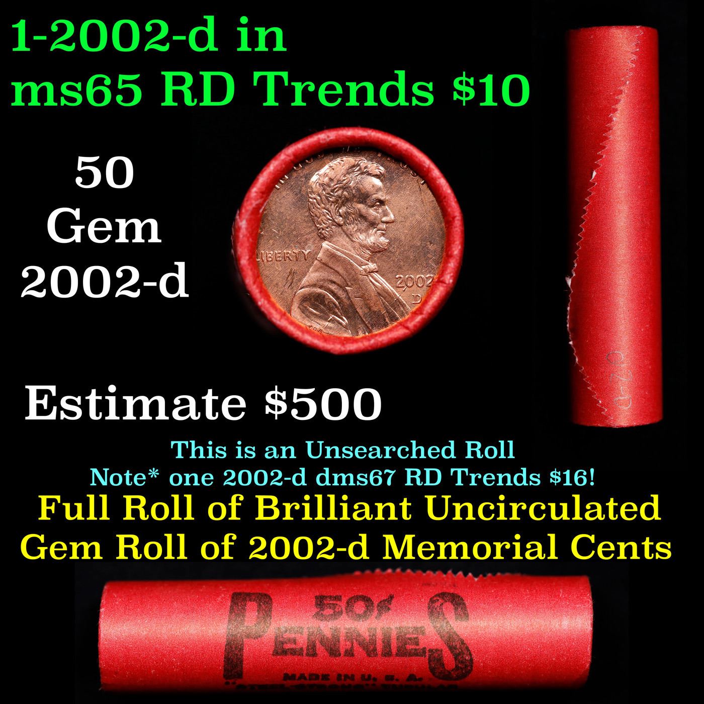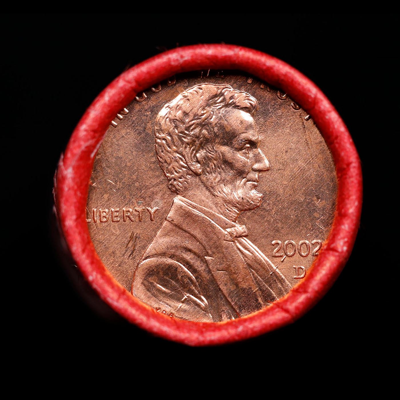 Shotgun Lincoln 1c roll, 2002-d 50 pcs Steel-Strong Wrapper.. A terrific Shotgun roll of Lincoln cents. Most if not all coin should be cherry red.