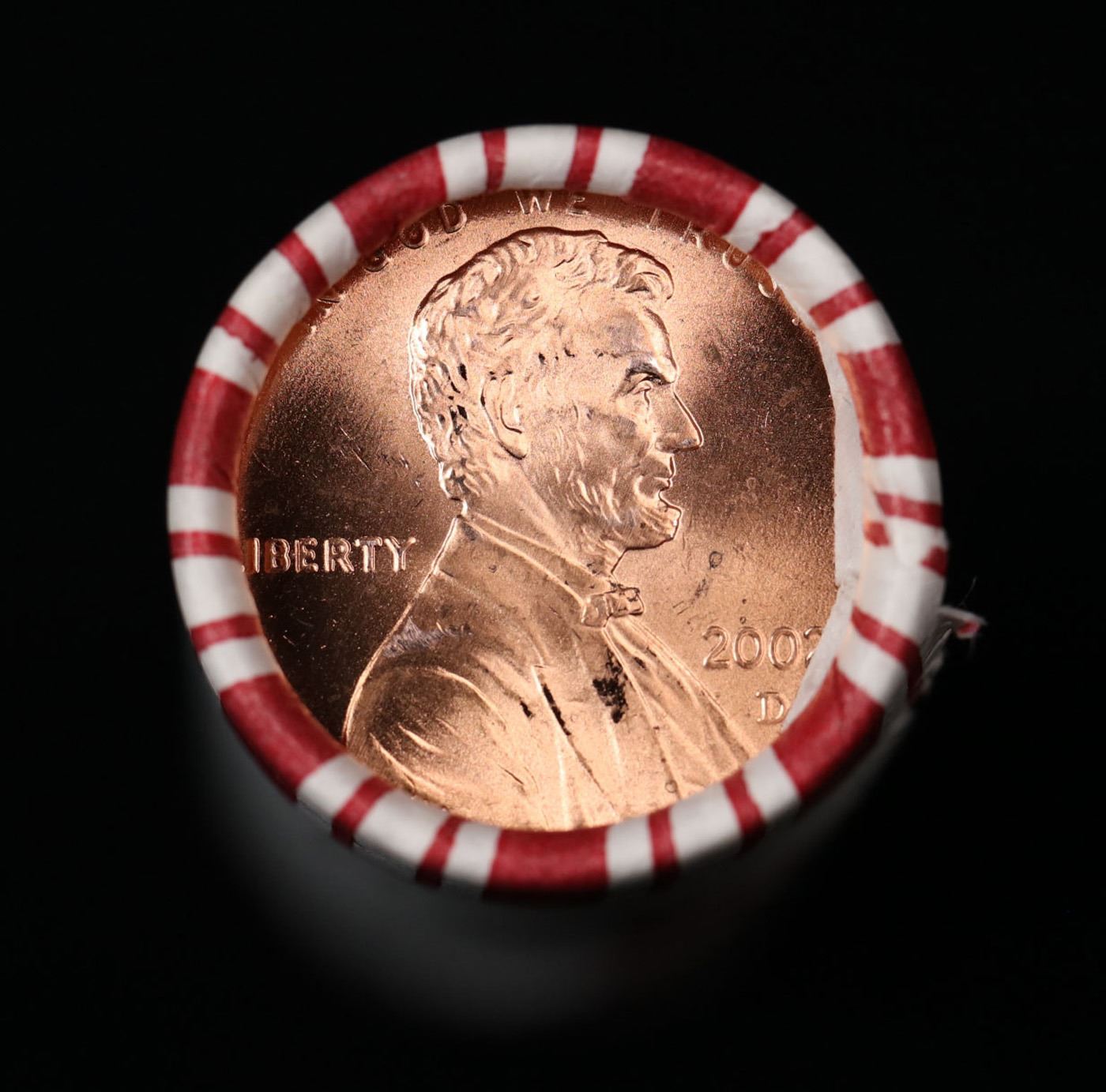 Shotgun Lincoln 1c roll, 2002-d 50 pcs Steel-Strong Wrapper.. A terrific Shotgun roll of Lincoln cents. Most if not all coin should be cherry red.