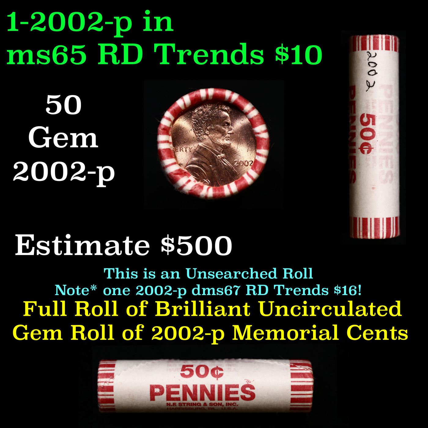 Shotgun Lincoln 1c roll, 2002-p 50 pcs String & Son Wrapper.. A terrific Shotgun roll of Lincoln cents. Most if not all coin should be cherry red.