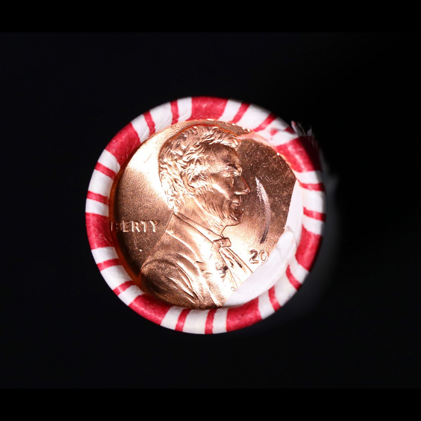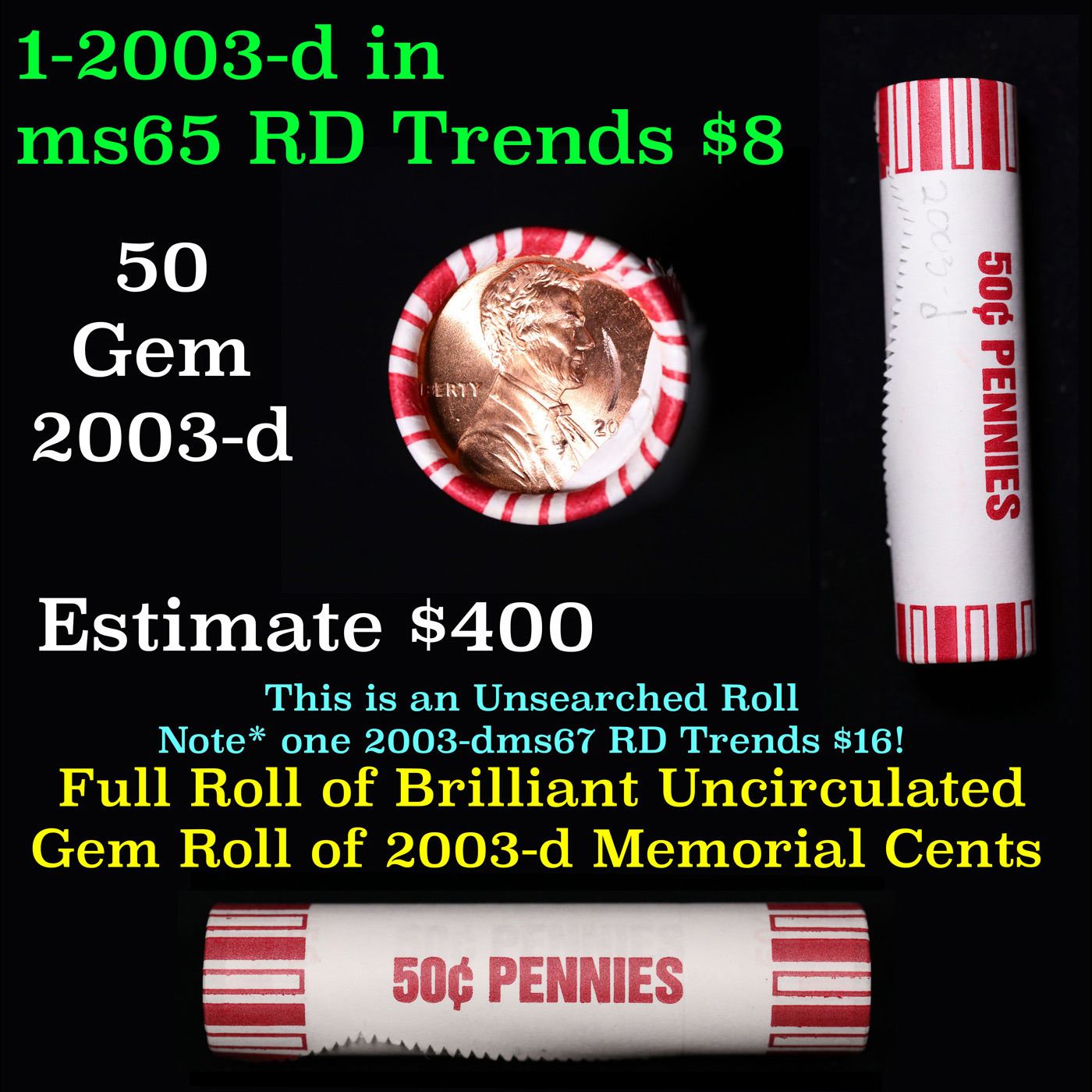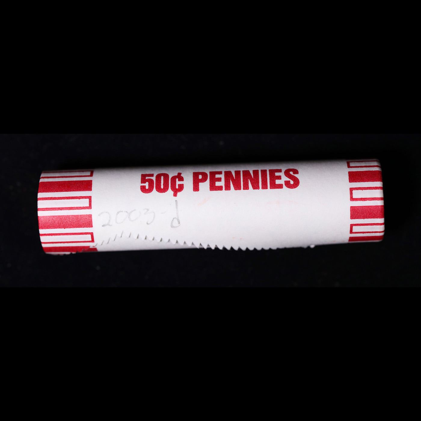 Shotgun Lincoln 1c roll, 2003-d 50 pcs Brandt 50c Wrapper.. A terrific Shotgun roll of Lincoln cents. Most if not all coin should be cherry red.