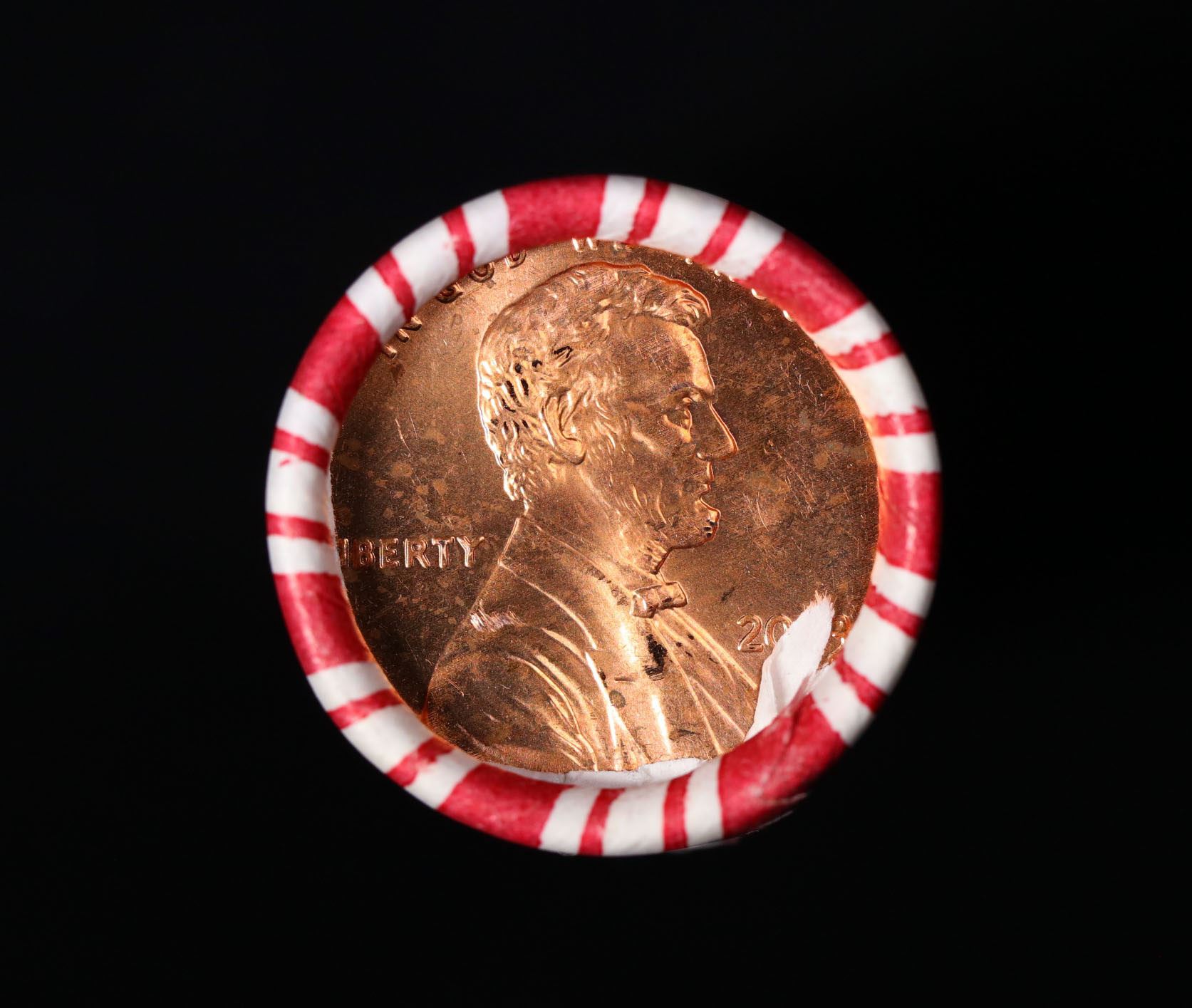Shotgun Lincoln 1c roll, 2003-d 50 pcs Brandt 50c Wrapper.. A terrific Shotgun roll of Lincoln cents. Most if not all coin should be cherry red.